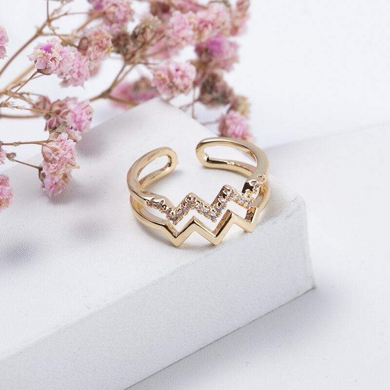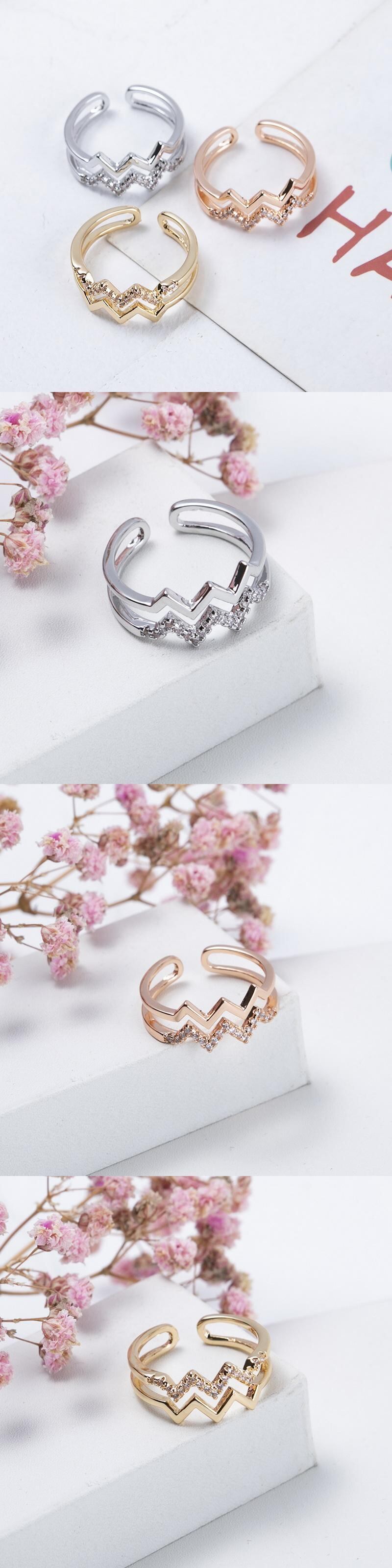 送料無料 ハートビートダブルレイヤージルコンオープンリングミニマリストシルバーカラーアジャスタブルフィンガーリング女性ウェディングジュエリーギフト 指輪 銀 アクセサリー AE1777796432383150
