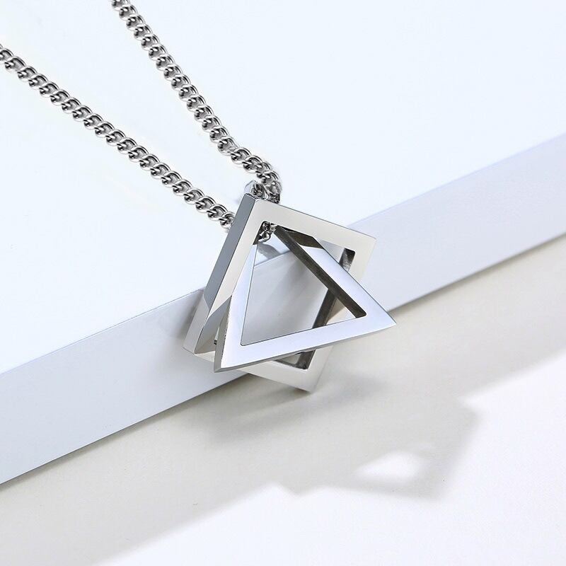 送料無料 2021スクエアトライアングル男性ペンダントメンズステンレススチールモダントレンディ幾何学的ステーキングストリートウェアネックレスジュエリー レース スクウェア アクセサリー AE1777719918506132