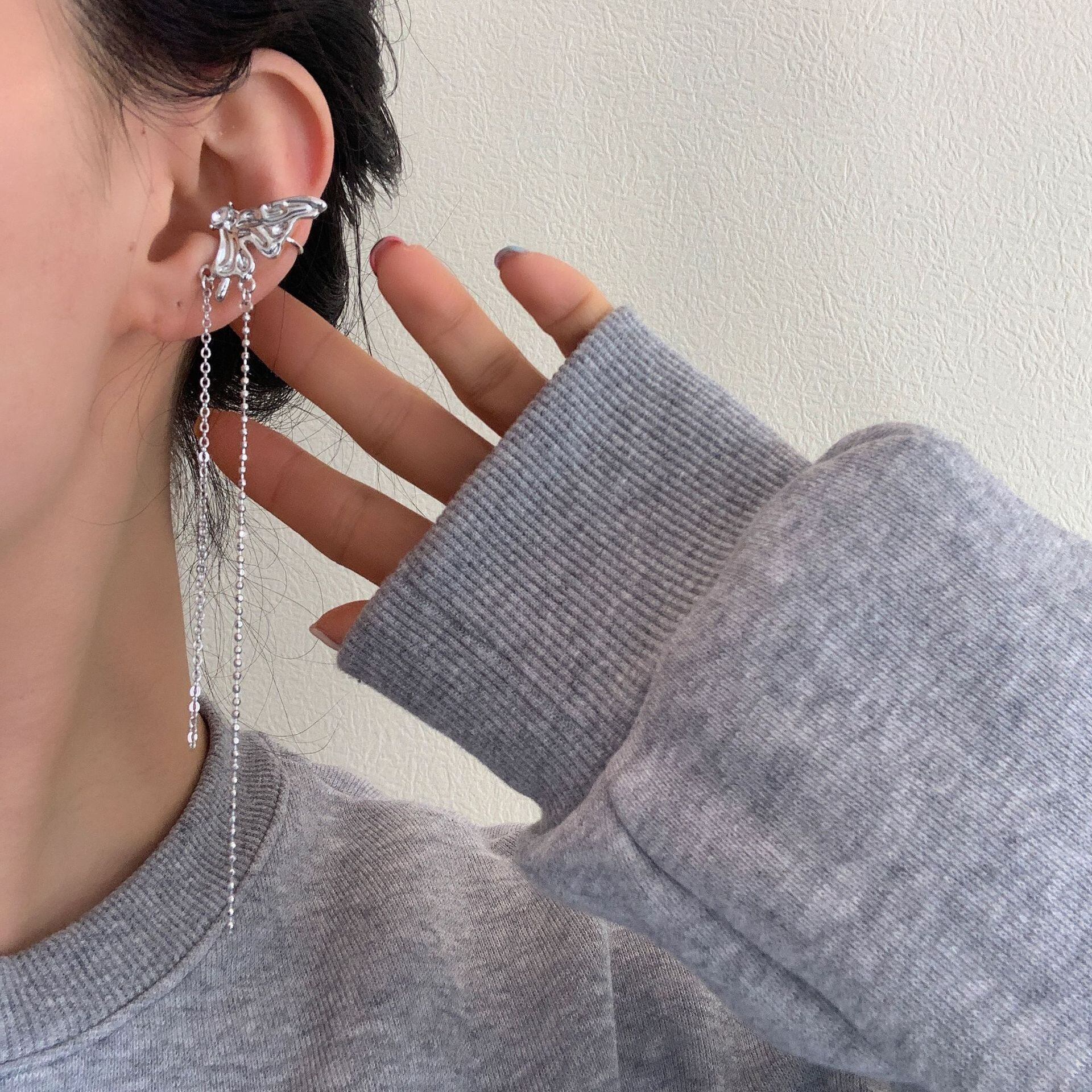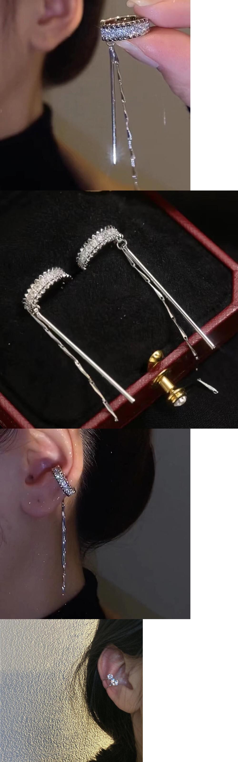 送料無料 光沢のあるジルコンCシェイプロングテルイヤーカフピアスなしシンプルでスタイリッシュなイヤークリップパーティージュエリー イヤリング リング 指輪 アクセサリー AE177772579352710