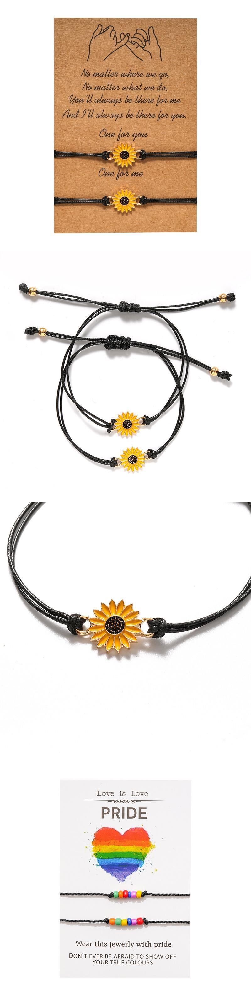 送料無料 手作りカップルブレスレットナチュラルストーンハートヒマワリペンダントアジャスタブルロープチェーンブレスレットラッキーフレンドシップジュエリー フラワーデザイン 天然 アクセサリー AE1777749077569960