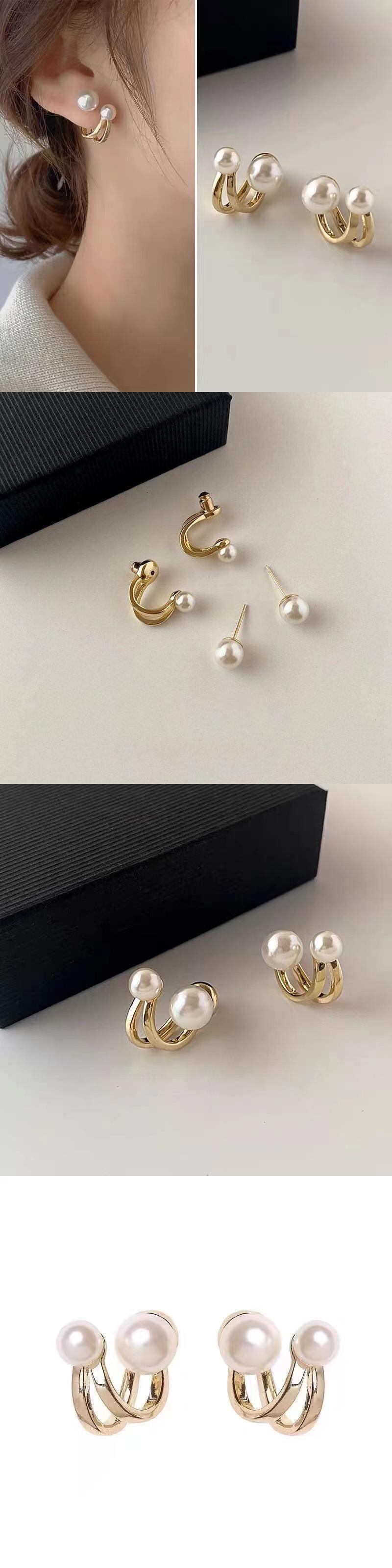 送料無料 トレンディなパールCシェイプの幾何学的なクリップイヤリングピアスなし蝶結びジルコン小さな耳のクリップラップイヤーカフパーティージュエリーギフト リボン 真珠 指輪 アクセサリー AE1777744325880027