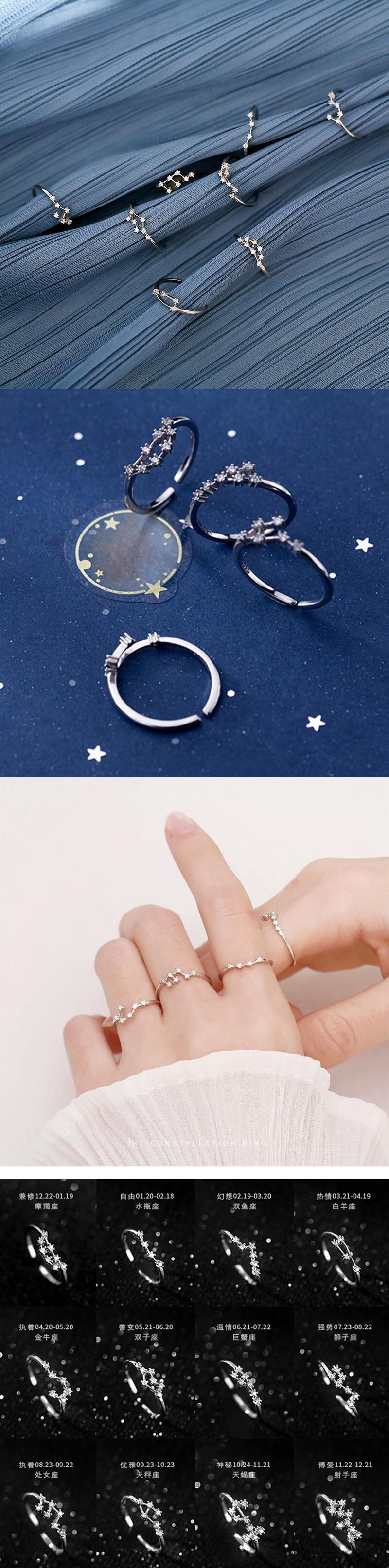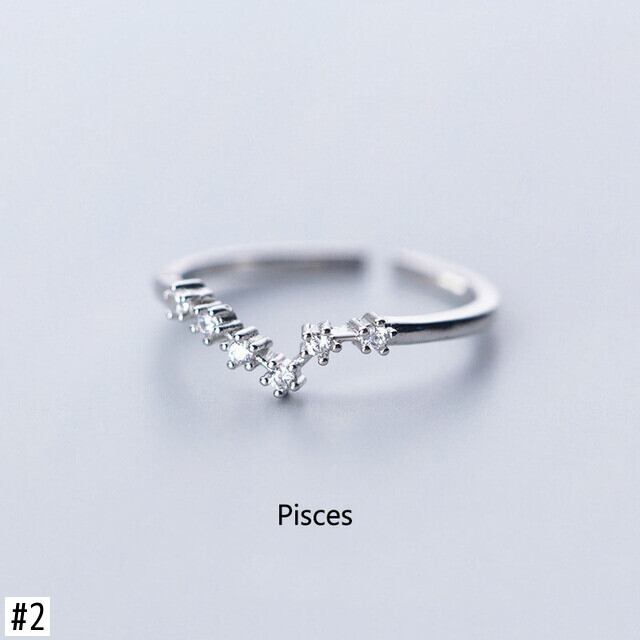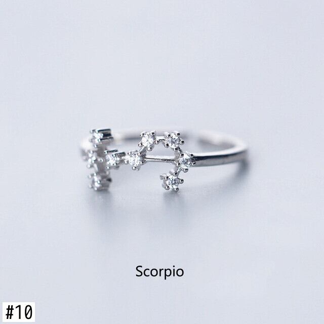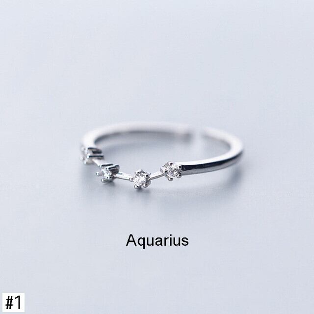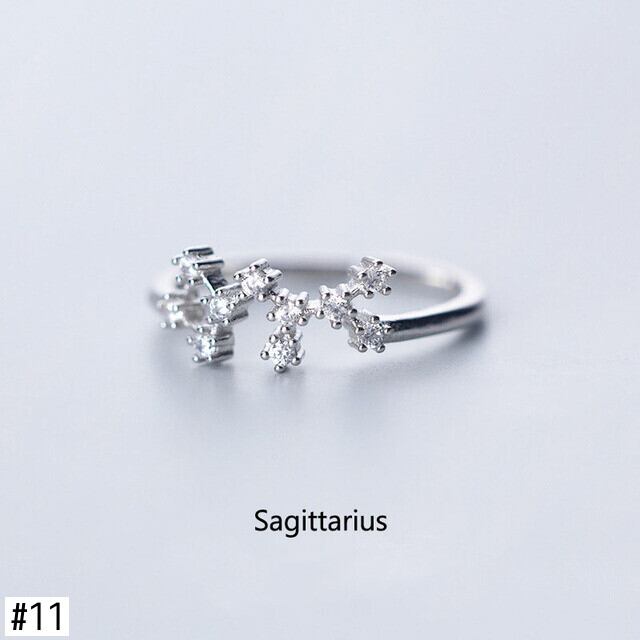 送料無料 ゾディアックサインフィンガーリング女性シルバーカラーアジャスタブルCZジルコンリング12コンステレーションジュエリーバースデーギフト 指輪 銀 アクセサリー AE1777781259566424