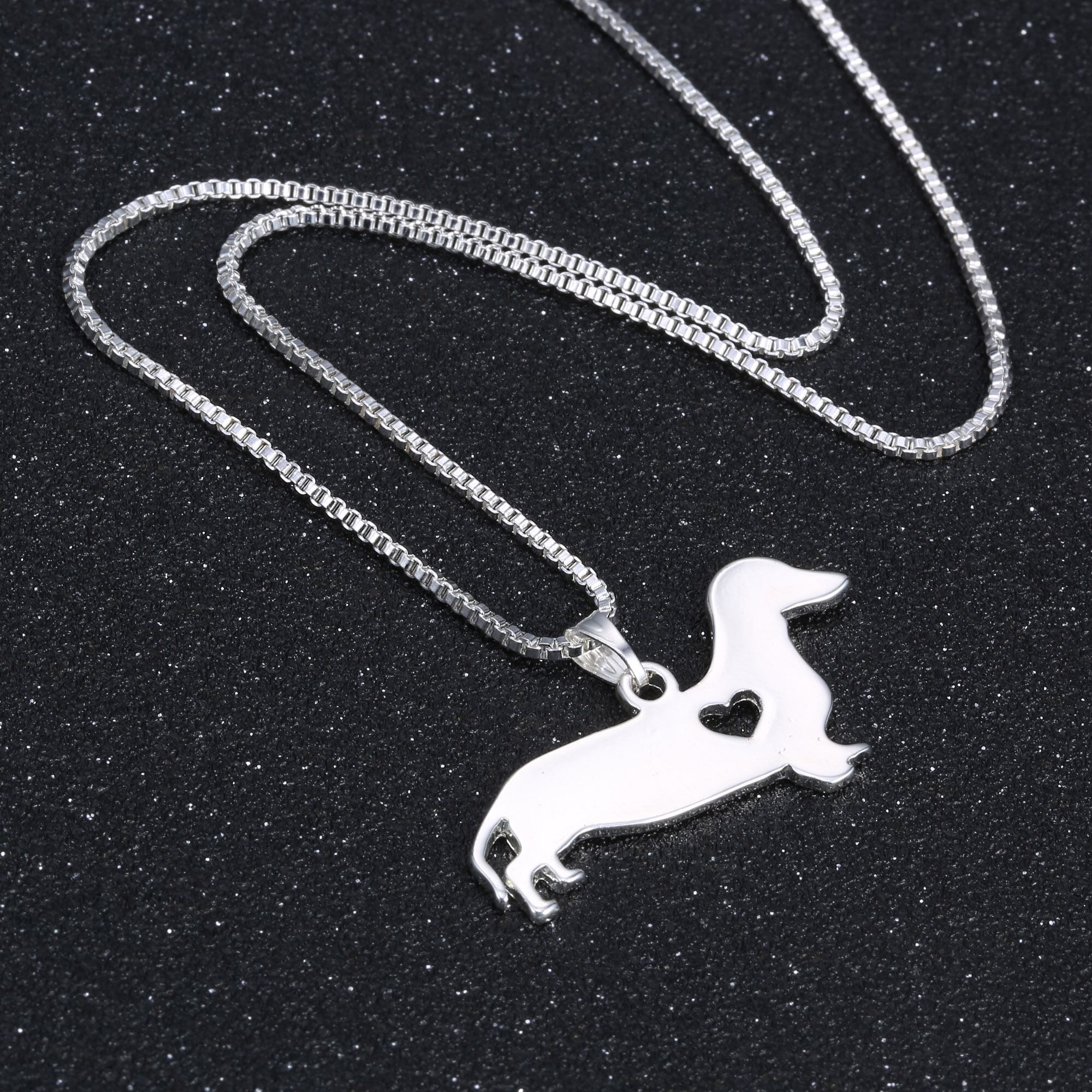 送料無料 シルバーカラーホロウハートかわいいメモリアルドッグペットラバーチャームチョーカーネックレスダックスフントアニマルパピーネックレス発送 レース 大人ガーリー スウィート キュート カジュアル 銀 アクセサリー AE177776672984302