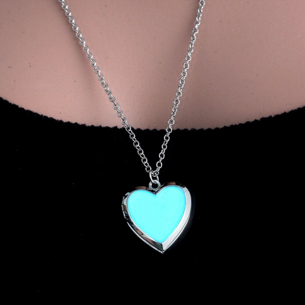 送料無料 ヴィンテージ輝くブルーライトハートペンダントネックレス暗闇で光るカップルネックレス女性男性誕生日ジュエリー恋人ギフト レース ビンテージ アクセサリー AE1777761771306076