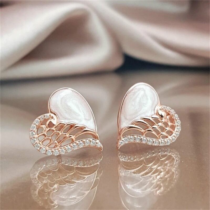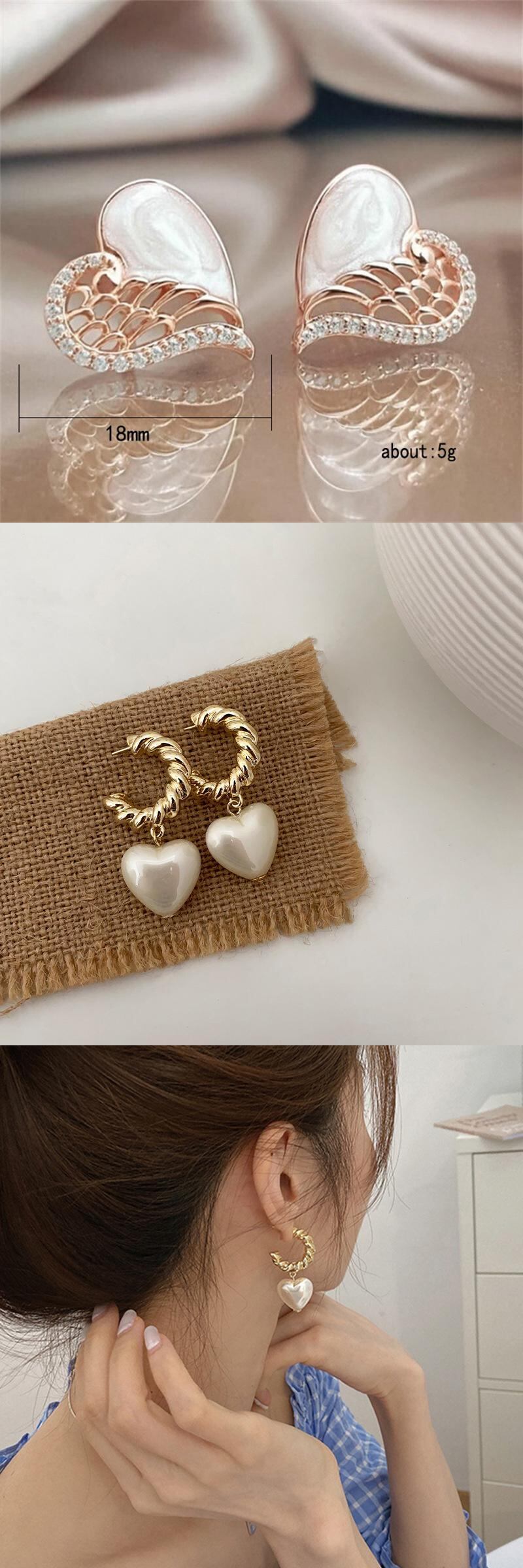送料無料 トレンディなパールラインストーンハートスタッドピアス女性フラワークリスタルジルコンステートメントイヤリングジュエリーギフト 真珠 指輪 フラワーデザイン アクセサリー AE177772750736475