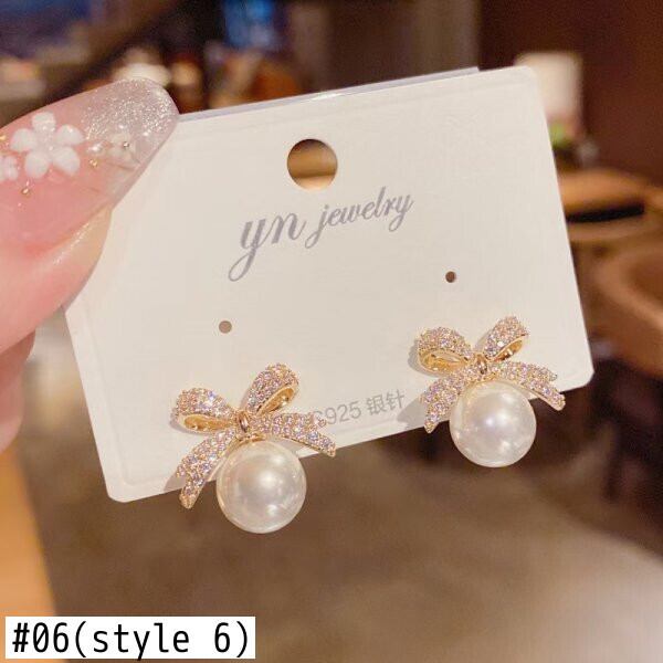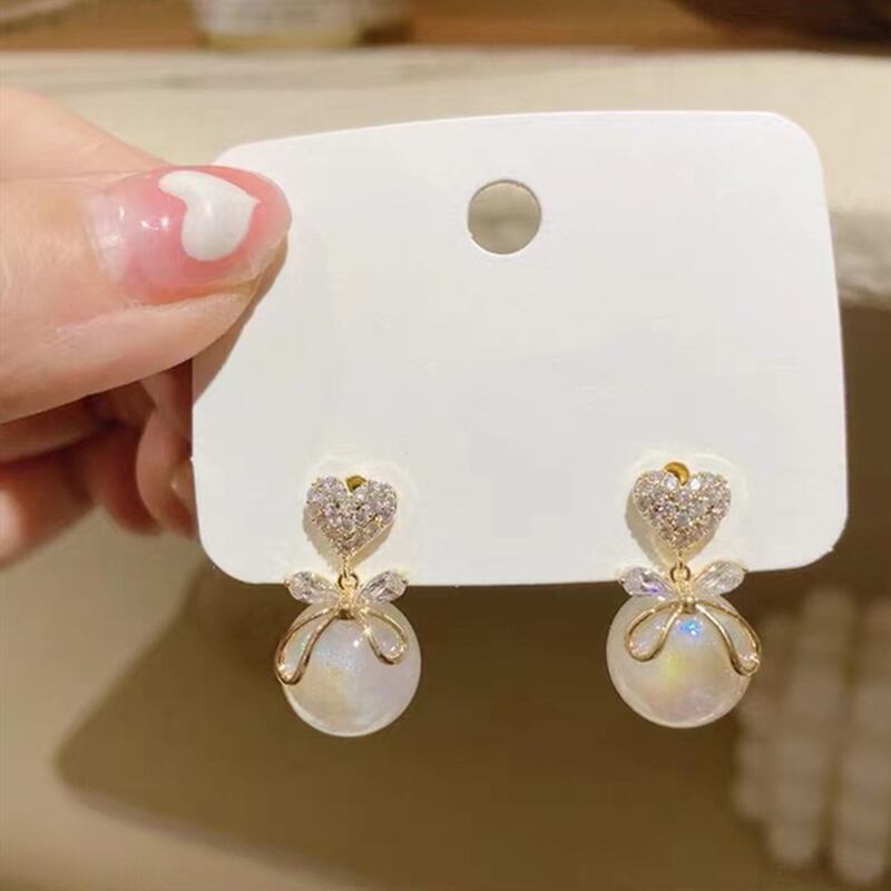 送料無料 ボウイミテーションパールピアスシャイニーラインストーンジルコンハートピアスレディースジュエリーパーティーベストギフト リボン イヤリング 真珠 リング 指輪 アクセサリー AE1777778570402525