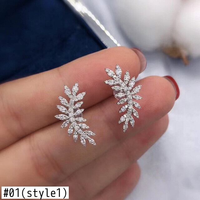 送料無料 絶妙なシルバーカラークリスタルの葉スタッドピアス女性高級AAAジルコンシャイニーウェディングピアス2022トレンドジュエリー イヤリング リング 指輪 銀 アクセサリー AE1777753668398246