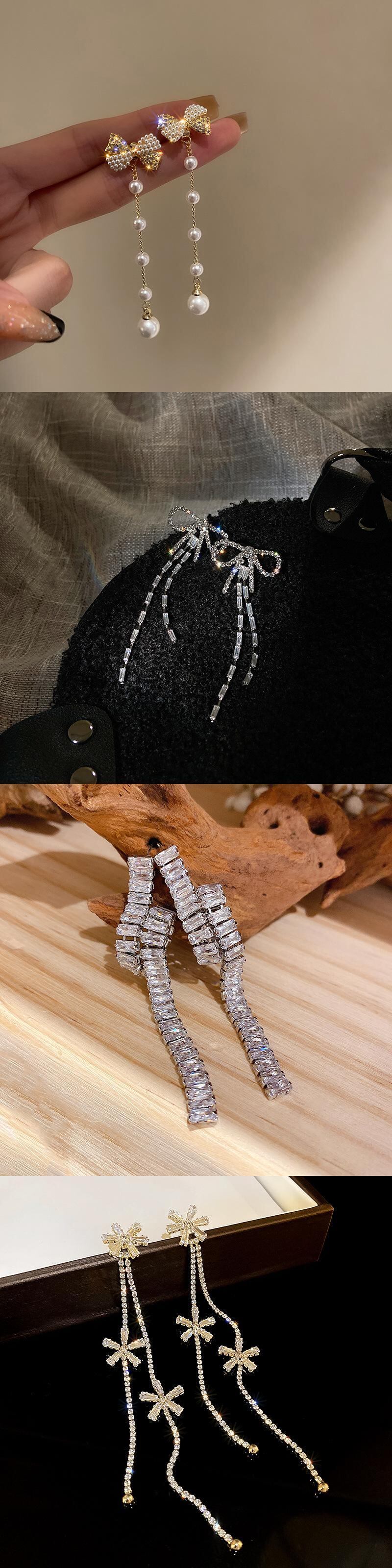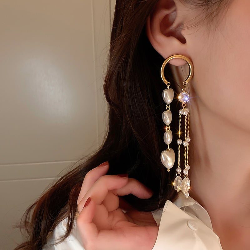 送料無料 ハートパールロングテルイヤリング女性ブリンブリンAAAジルコンイヤリング花嫁ウェディングパーティージュエリーギフト 真珠 指輪 アクセサリー AE177775194740261