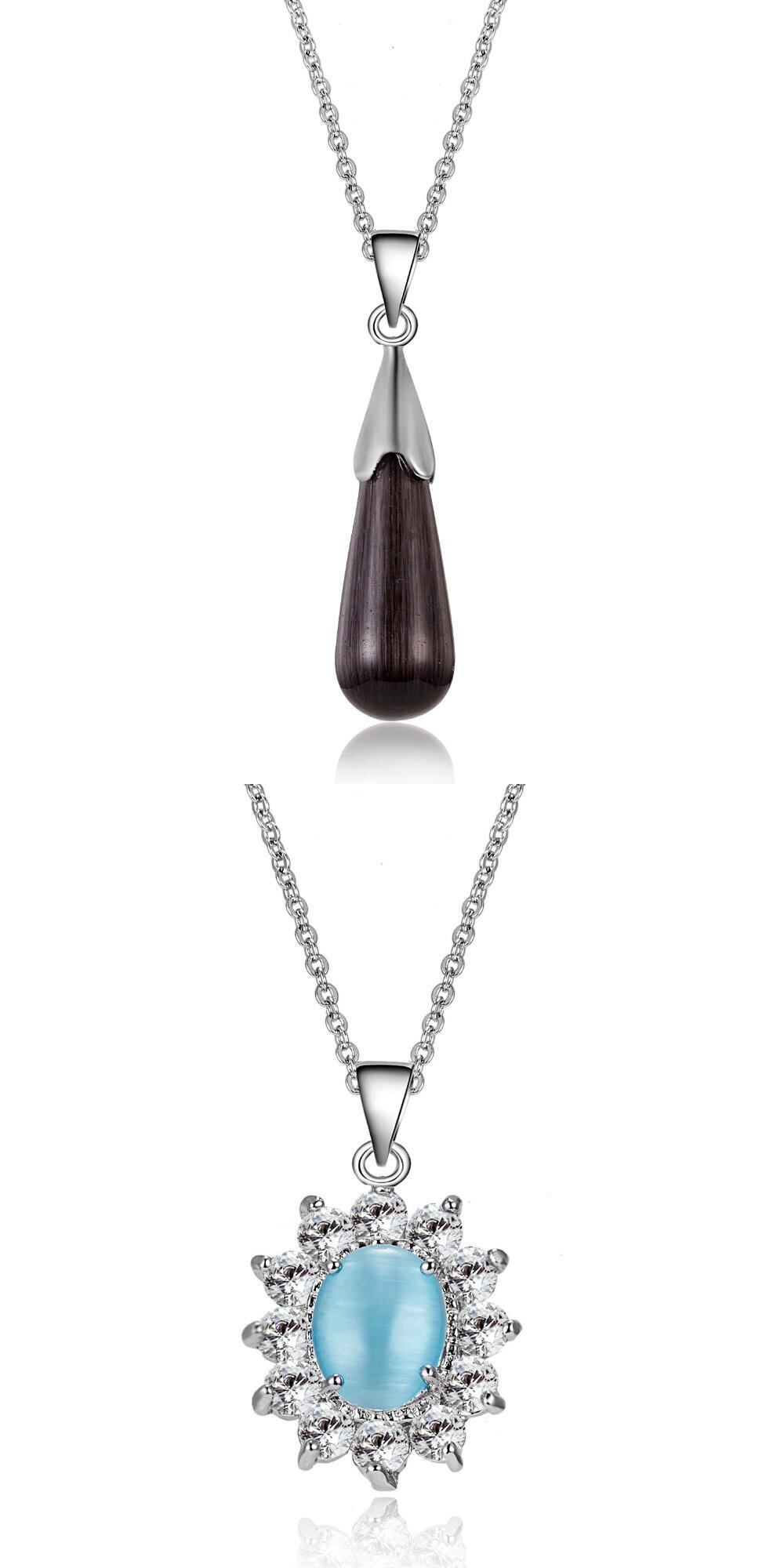 送料無料 チャームヴィンテージレディブルージェムネックレスシルバーカラーシャイニージルコンネックレス&ペンダント幾何学的ステートメントジュエリービジュー レース 銀 ビンテージ アクセサリー AE1777775217904445