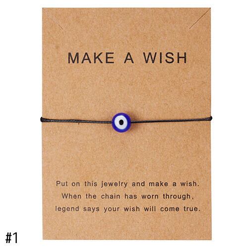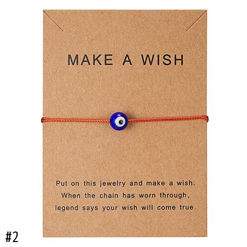 送料無料 リンフーメイクアウィッシュブルーイービルアイウーブンペーパーカードブレスレット女性アジャスタブルラッキーレッドストリングブレスレットジュエリー アクセサリー AE1777795588642324