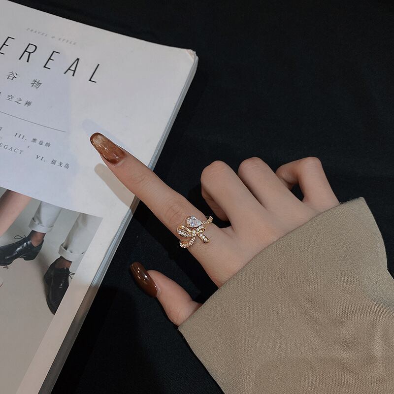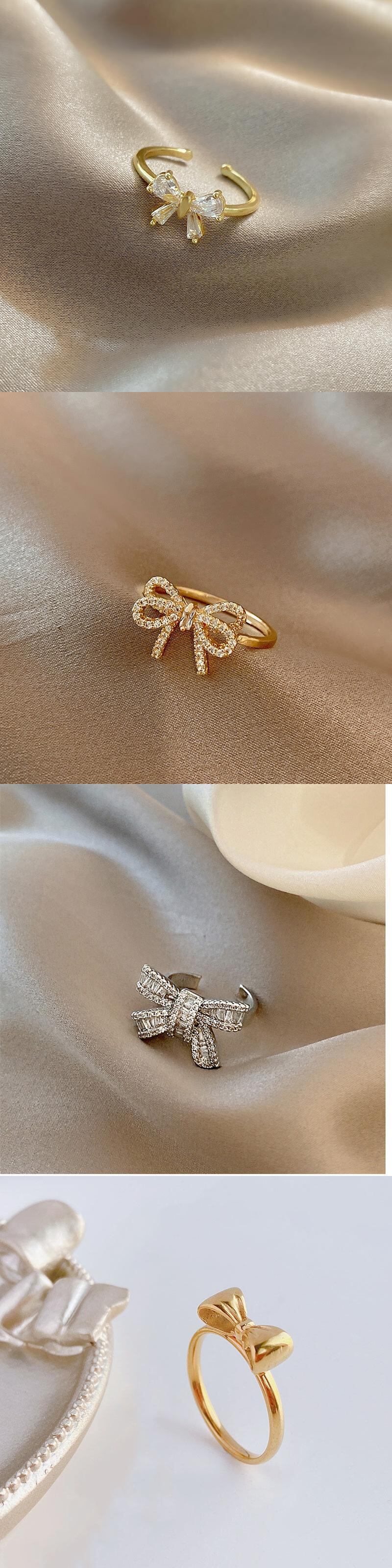 送料無料 ヴィンテージゴールドメタルかわいい蝶結びリング女性の繊細な蝶結び光沢のあるジルコンクリスタルリングパーティーウェディングジュエリーギフト リボン 大人ガーリー スウィート キュート カジュアル 指輪 ビンテージ アクセサリー AE1777767449866157