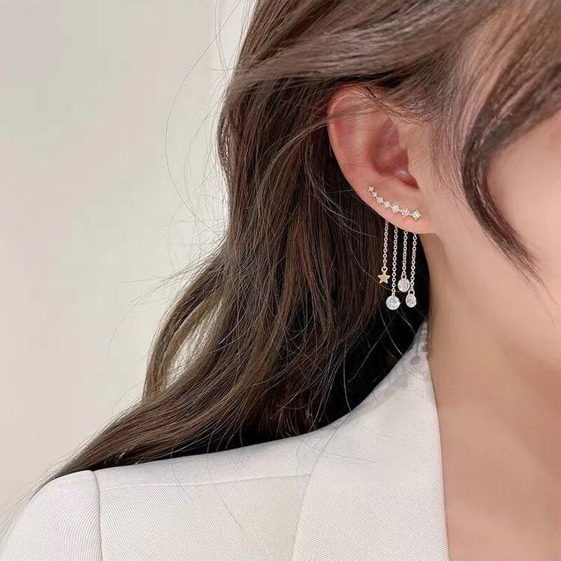 送料無料 2022トレンドロングテルピアスレディースジュエリーラグジュアリーシャイニースターリーフジルコンピアス イヤリング リング 指輪 アクセサリー AE1777718550412046