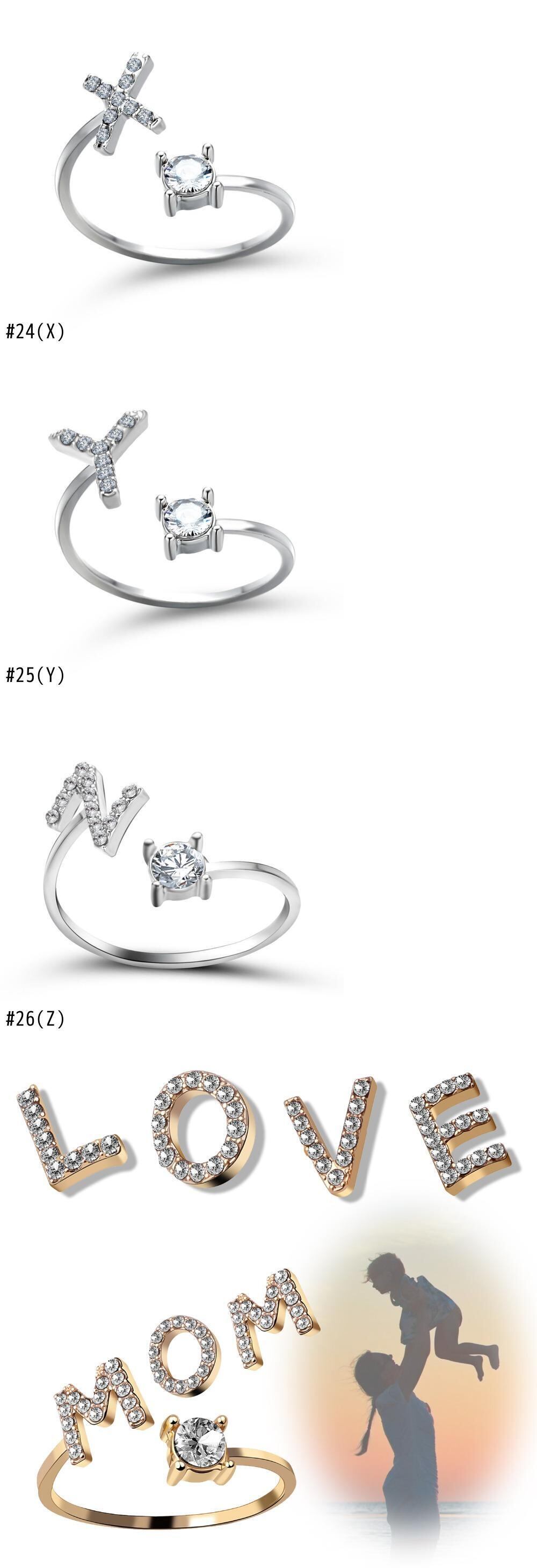 送料無料 小さな26文字リング女性クリエイティブ調整可能なオープンリングアルファベット頭文字名指輪ジュエリー友情ギフト アジャスタブル アクセサリー AE1777724650746588
