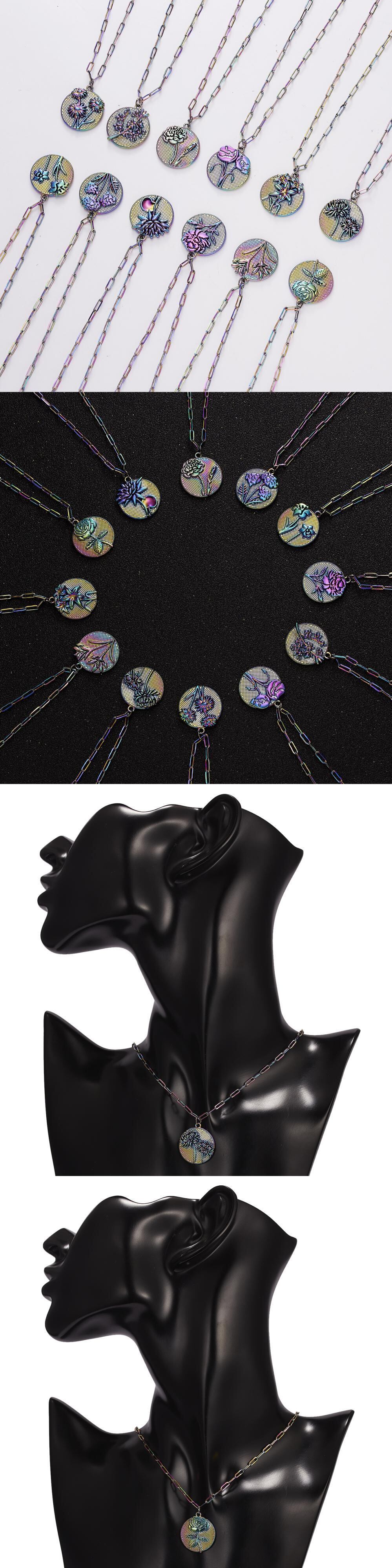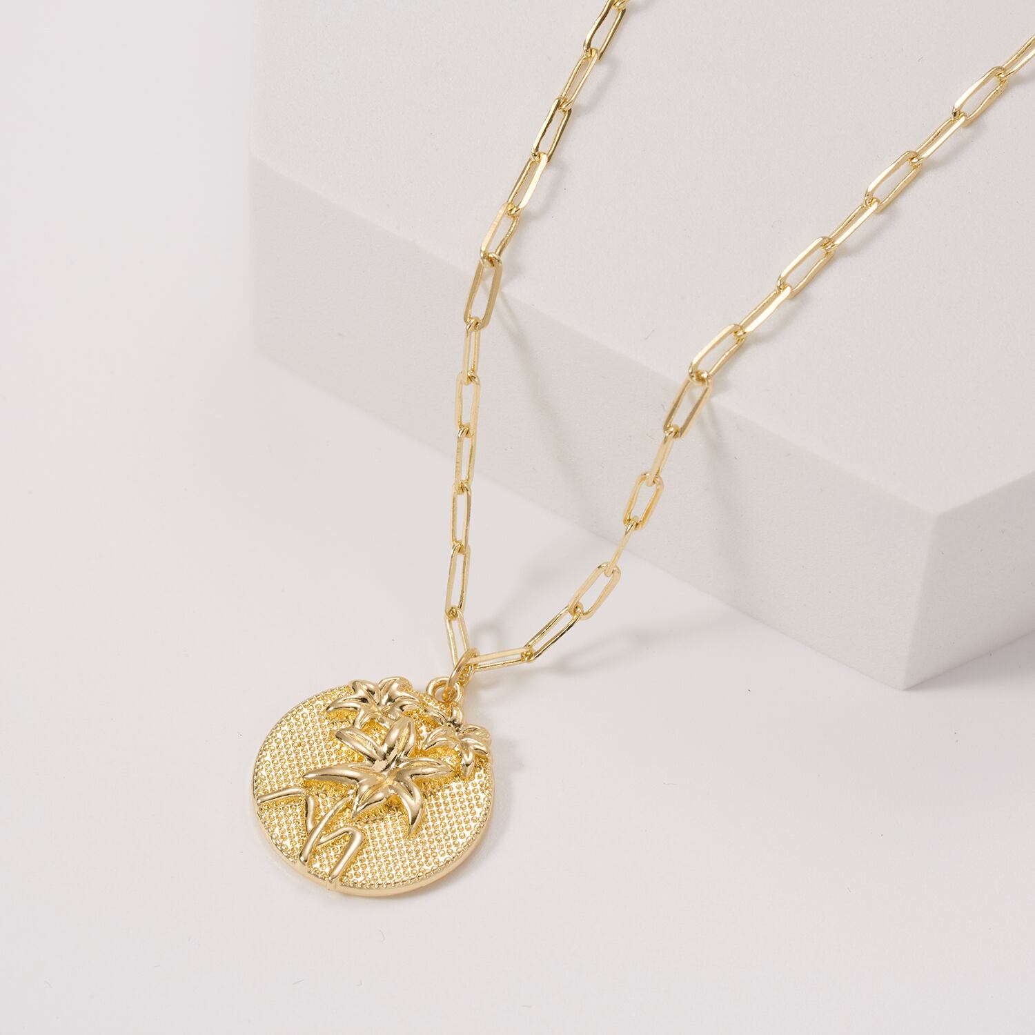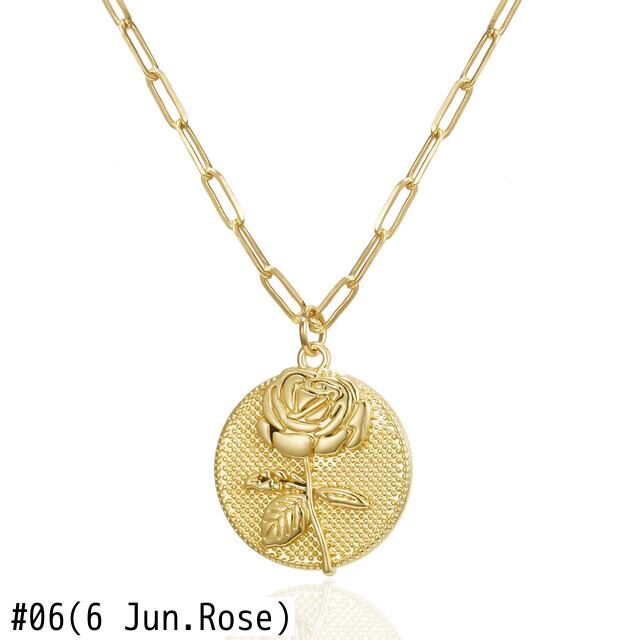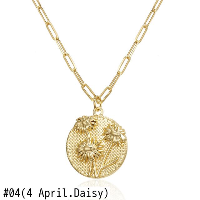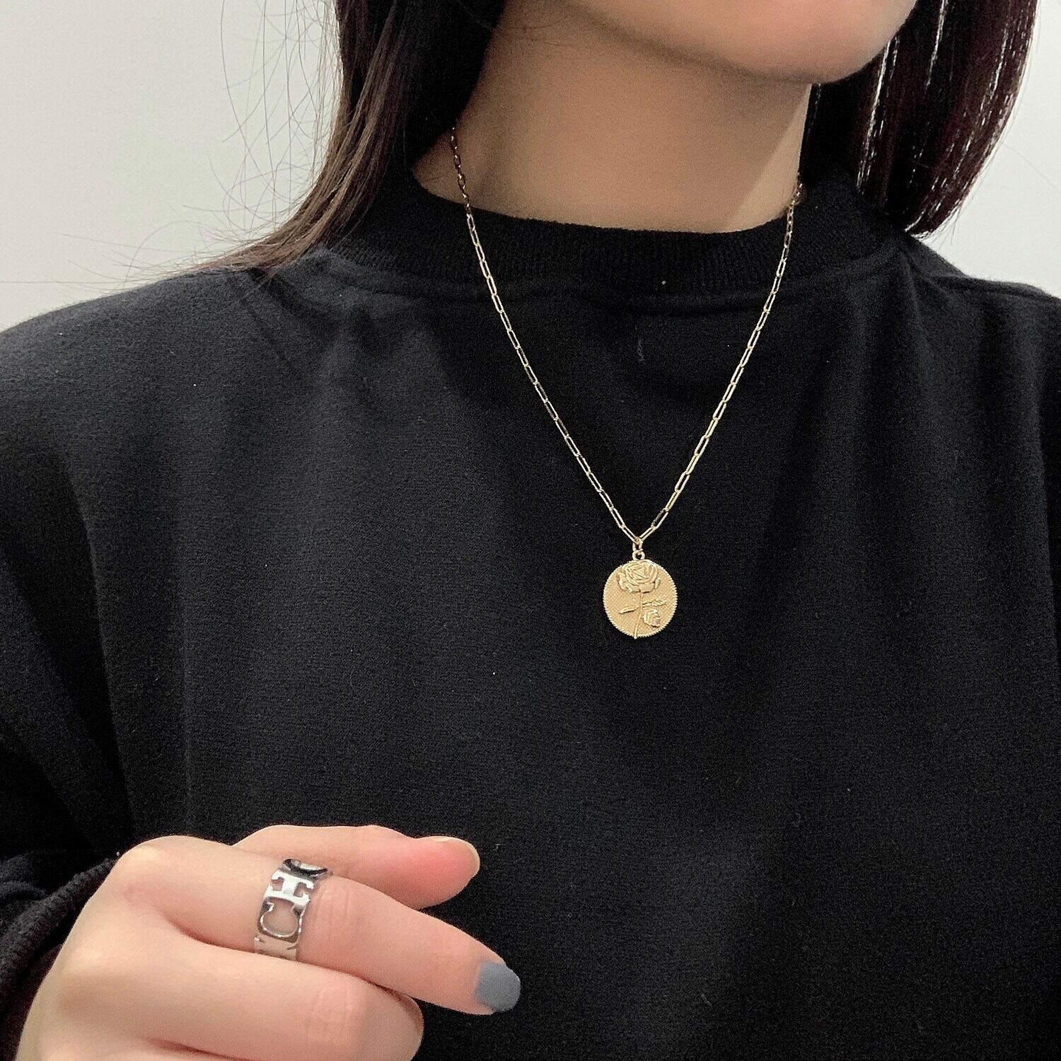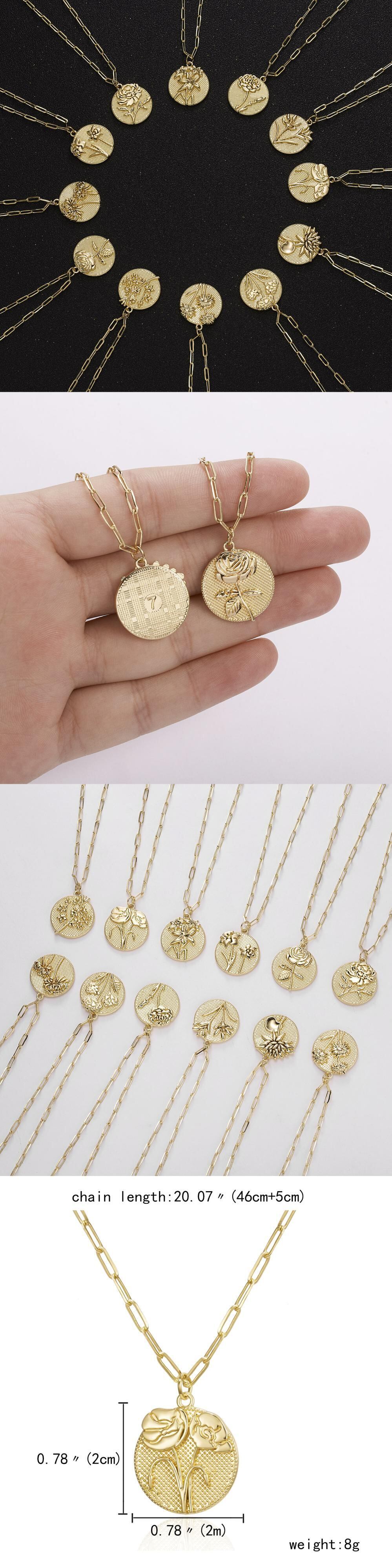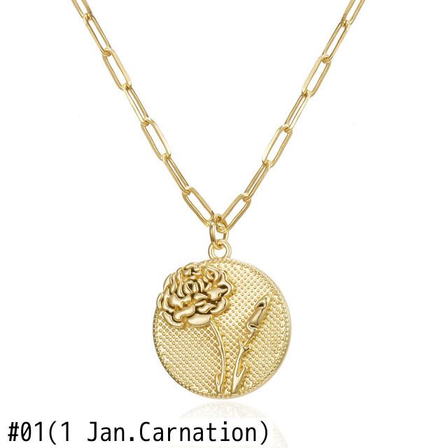 送料無料 可憐なラウンドコイン刻まれた花デイジーローズロータスペンダントネックレス女性ヴィンテージゴールドリンクチェーン誕生月フラワージュエリーギフト レース フラワーデザイン ビンテージ アクセサリー AE177777693868576