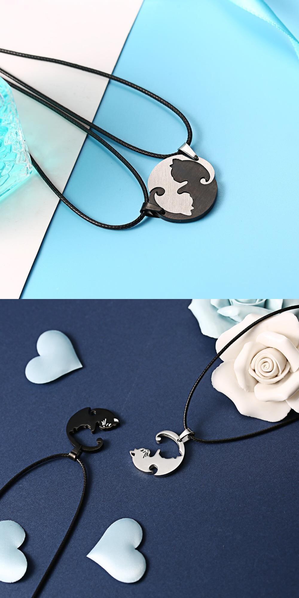 送料無料 ヴィンテージブラックホワイトカップルネックレストップステンレススチールペンダントネックレス友情ジュエリー男性女性恋人の贈り物 レース ビンテージ アクセサリー AE177773447884191