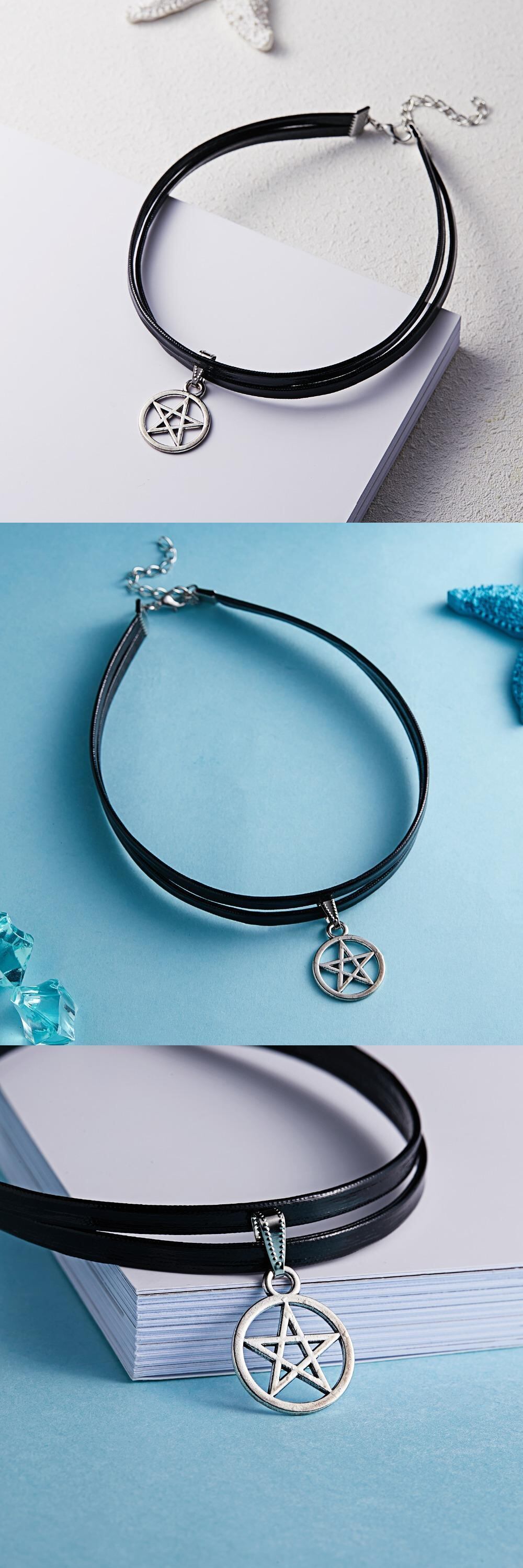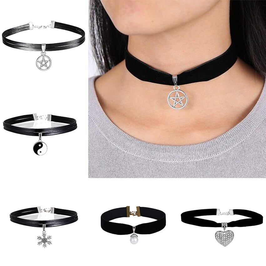 送料無料 ブラックレザーロープネックレスチャーム鎖骨チェーンネックレス女性の女の子ショートネックカラージュエリーチョーカービジュー レース アクセサリー AE1777735801834741