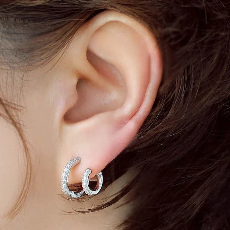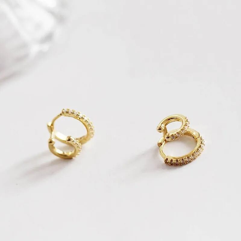 送料無料 ヴィンテージゴールドシルバーカラークリスタルイヤリングフープスモールサークルダブルレイヤーフープピアスレディースガールズジュエリー 指輪 銀 ビンテージ アクセサリー AE1777727479043296