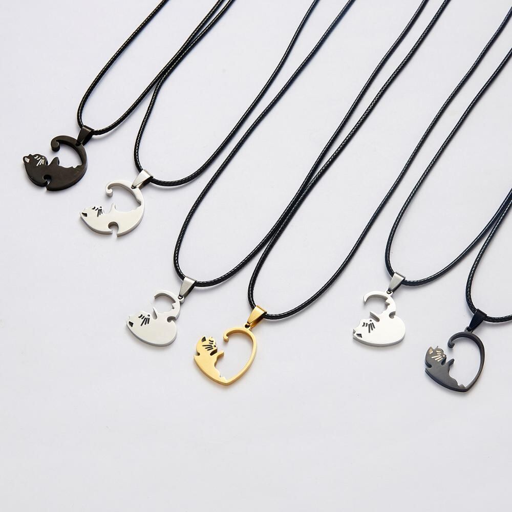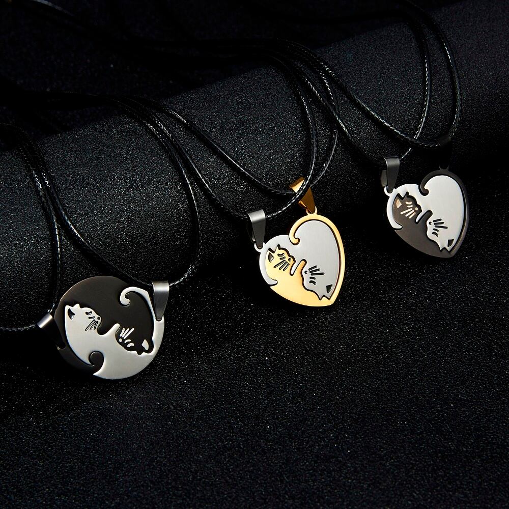 送料無料 Rinhooかわいいカップルジュエリー動物ネックレスClicYinYangブラックホワイトカップルネックレスチタンスチール猫ペンダントネックレス レース 大人ガーリー スウィート キュート カジュアル アクセサリー AE1777787538922549