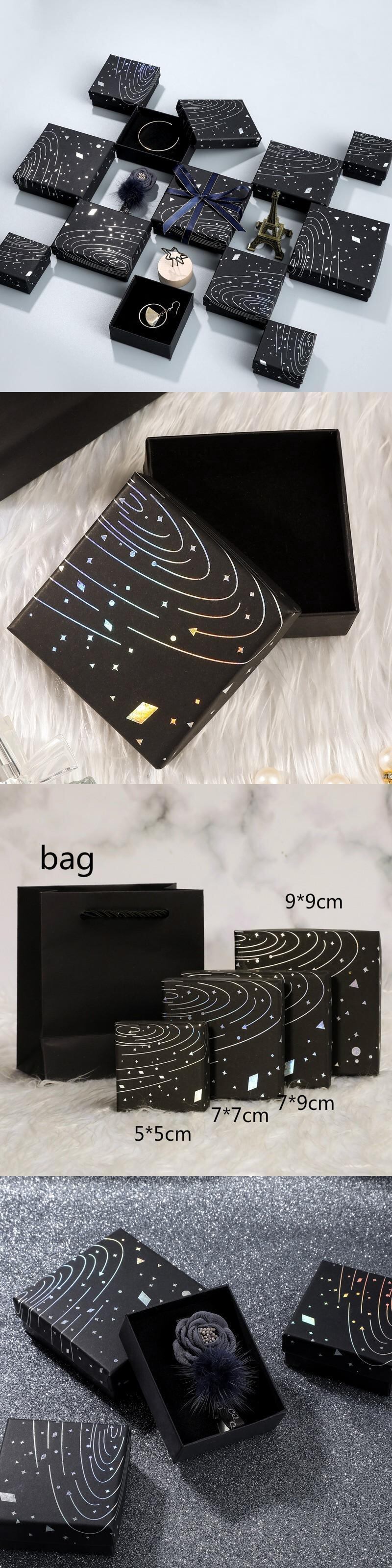 送料無料 5サイズブラックチャームギャラクシージュエリーボックスイヤリングリングネックレスブレスレットギフトボックスウェディングパーティー用品パッケージ レース 指輪 アクセサリー AE1777727515732007