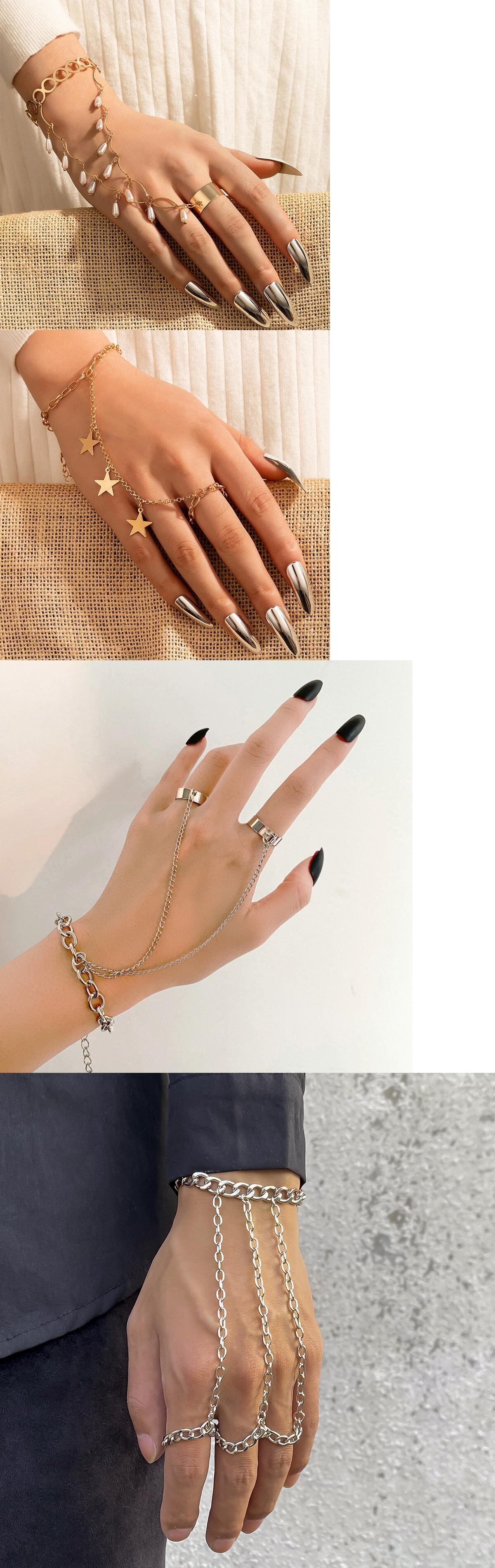 送料無料 ヒップホップパンクスタームーンバタフライゴールドチェーンリングレディースジルコンパールテルオープンフィンガーリングガールパーティージュエリーギフト 指輪 真珠 アクセサリー AE1777760527480296