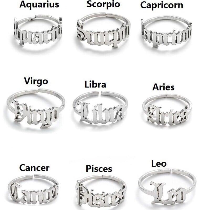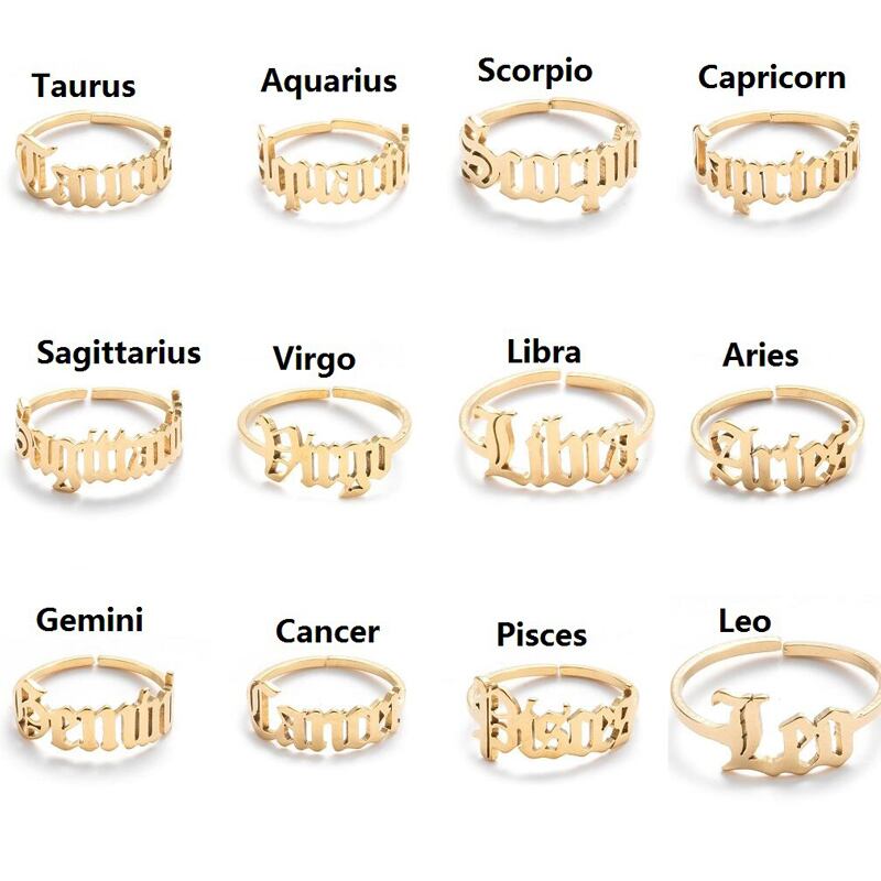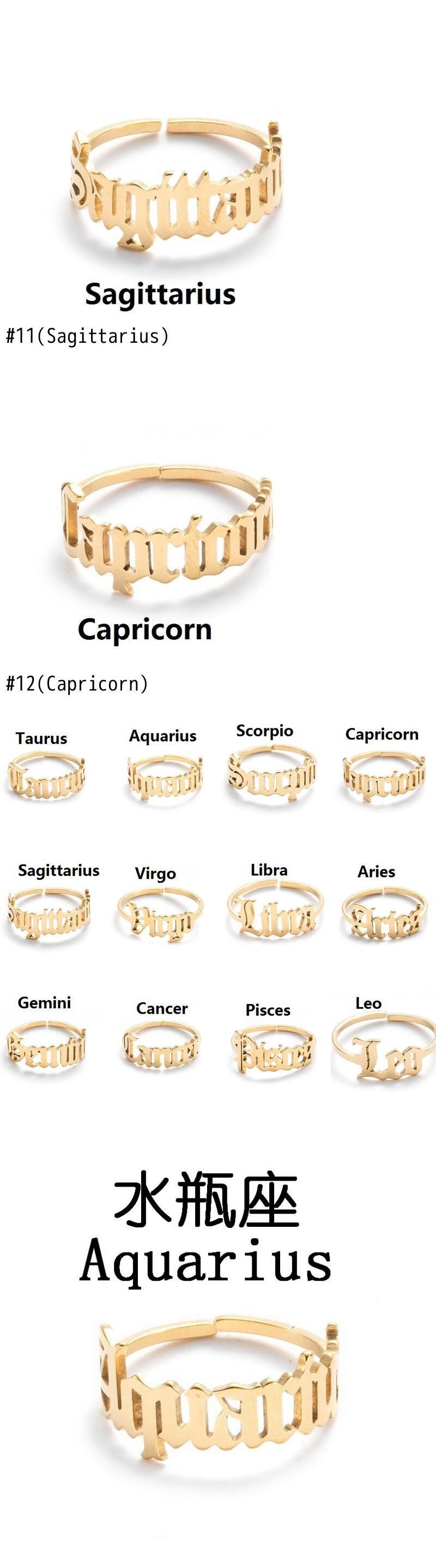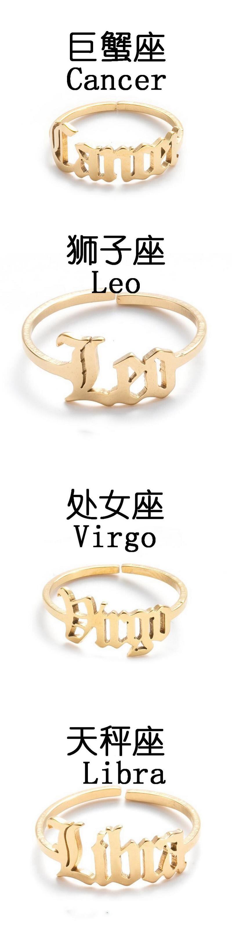 送料無料 ステンレス鋼干支リング女性男性アンティークスタイルレターレオ牡羊座リングミニマリスト12星座ジュエリー 指輪 アクセサリー AE1777731094072789