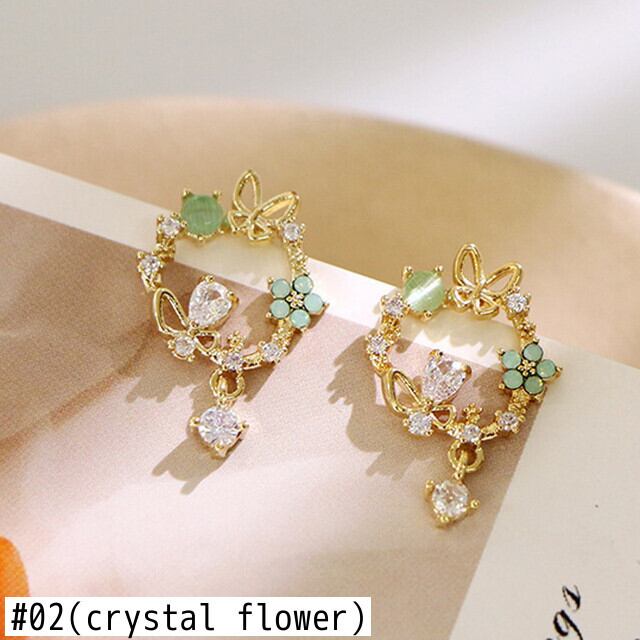 色:01(リーフ),02(クリスタルフラワー),03(デイジー),04(フラワーテル),05(エナメルフラワー),06(カラフルな蝶),07(パープルバタフライ),08(シェルフラワー),09(かわいいハート),10(ハートビート),11(丸),12(スクエア),13(ラウンド),14(フープ),15(シルバーリーフ),16(ローズゴールドリーフ),17(小さなフープ),18(ゴールドスタッド),19(シルバースタッド)