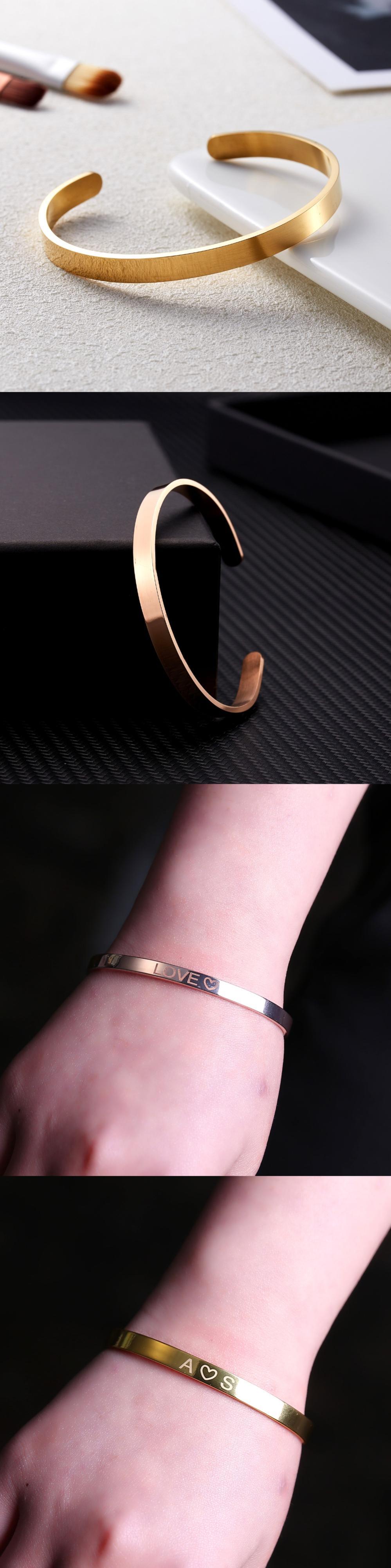 送料無料 Rinhooパーソナライズされたステンレス鋼カスタムブレスレット&バングル無料刻印カフブレスレット女性愛好家ギフト船 アクセサリー AE1777789952060247