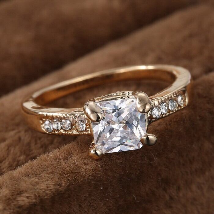 送料無料 女性の婚約指輪クリスタルリング花嫁の結婚式の金の指輪ガールギフトジュエリー アクセサリー AE1777761219796596