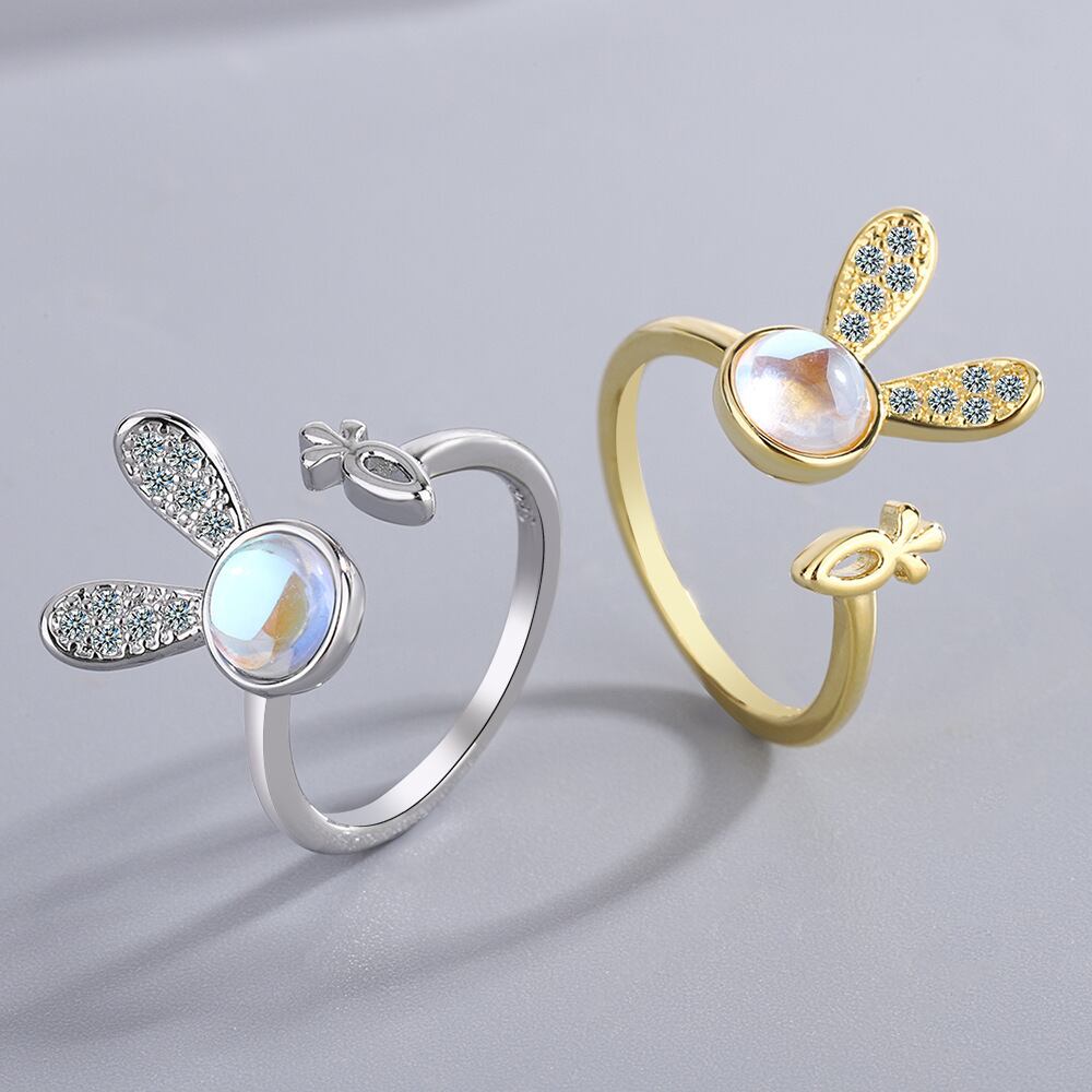 送料無料 Kpopうさぎリング光沢のあるキュービックジルコニアの葉幾何学的に調整可能な指輪女の子ミニマリストジュエリーギフト アジャスタブル 風信子石 アクセサリー AE1777719369945466
