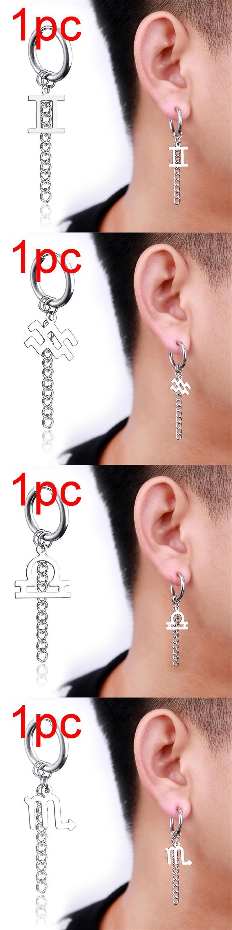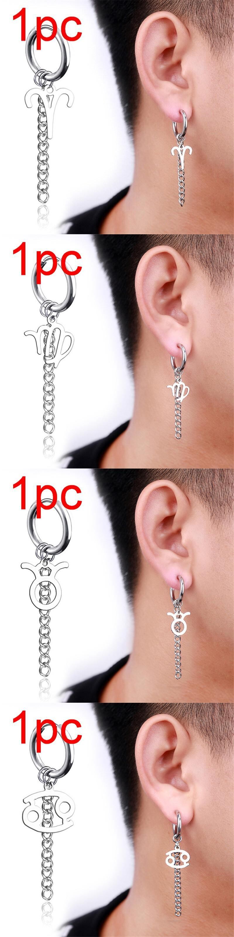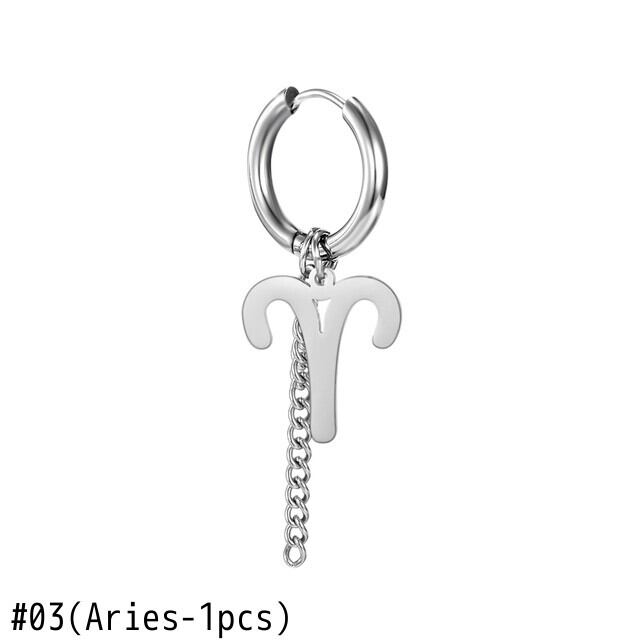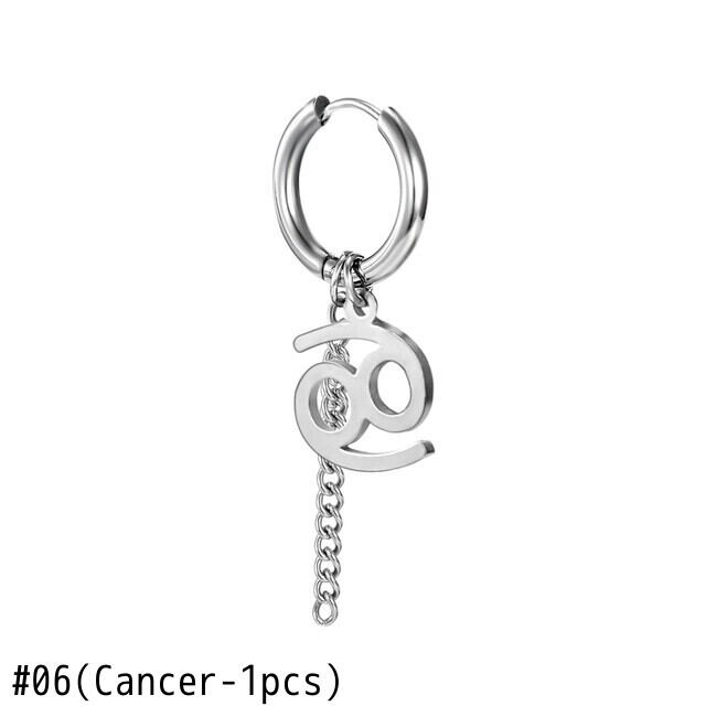 送料無料 1個ステンレススチールゾディアック12コンステレーションイヤリング男性女性Telチェーンサークルフープイヤリングがんレオ蠍座ペンダント 指輪 アクセサリー AE1777761880224198
