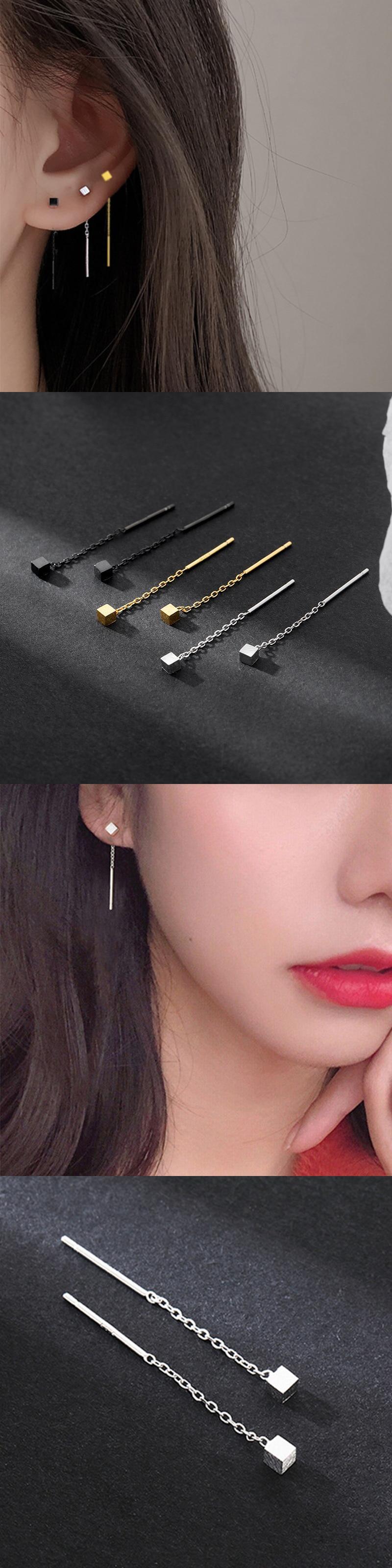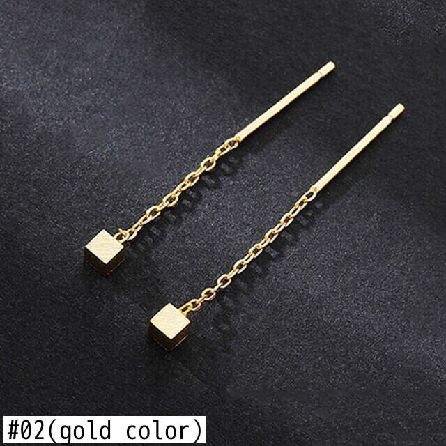 送料無料 ミニマリストロングテルイヤリング女性ゴールドシルバーカラー幾何学的な正方形ハンギングイヤーラインガールズパーティージュエリーペンディエンテス 指輪 銀 スクウェア アクセサリー AE1777761693980204