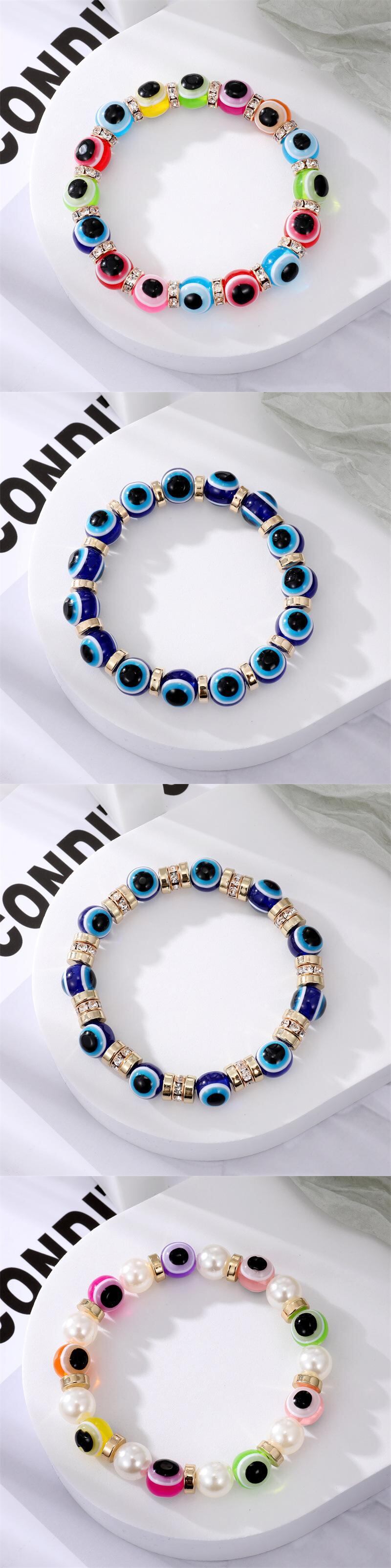 送料無料 ターキッシュブルーイービルアイブレスレットカラフルクリスタルレジンビーズブレスレット女性男性手作りラッキーアイカップルブレスレットジュエリー アクセサリー AE1777776009484506