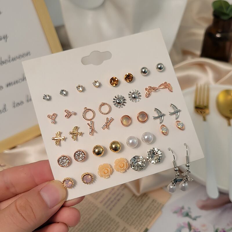送料無料 20/12ペアスタイルラインストーンパールスタッドピアスセットレディースジュエリーガールスウィートフラワー幾何学クリスタルピアス イヤリング 大人ガーリー キュート カジュアル 真珠 リング 指輪 フラワーデザイン アクセサリー AE1777714990724016