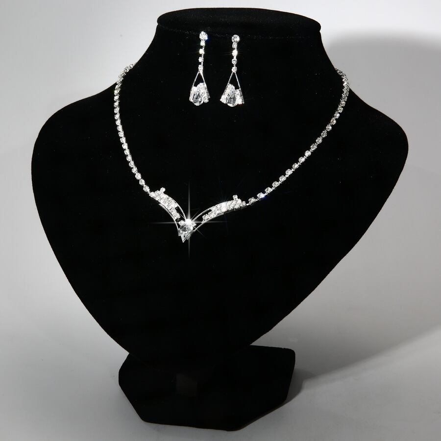 送料無料 スパークリングV字型ラインストーンチョーカーネックレスラグジュアリークリスタルシルバーカラーネックレス&イヤリングブライダルウェディングジュエリーセット レース 指輪 銀 アクセサリー AE1777741826563299