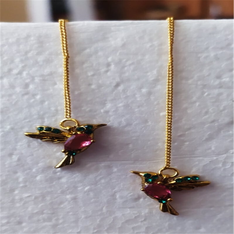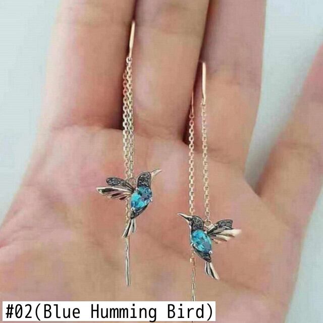 送料無料 ハミングバードイヤリングクリスタルロングテルスダングルイヤリング女性ユニークなイヤリングジュエリー 指輪 アクセサリー AE1777767053304026