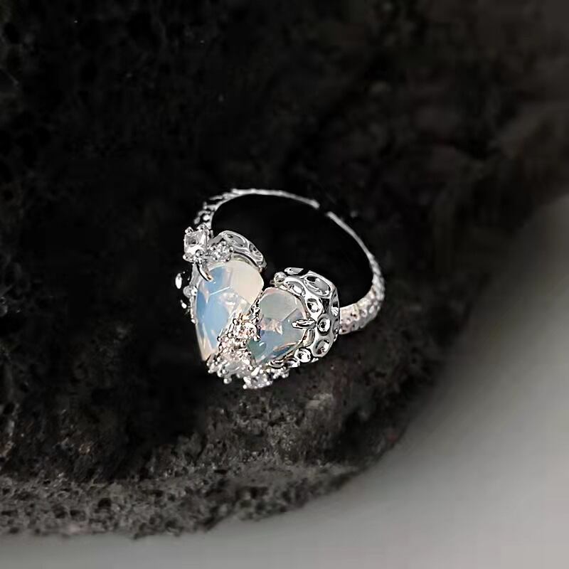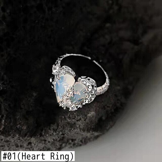 送料無料 Kpop2022トレンドシルバーカラークリスタルハートシェイプリング女性クリエイティブ不規則オープンリングガールズパーティージュエリーギフト 指輪 銀 アクセサリー AE177774246242398