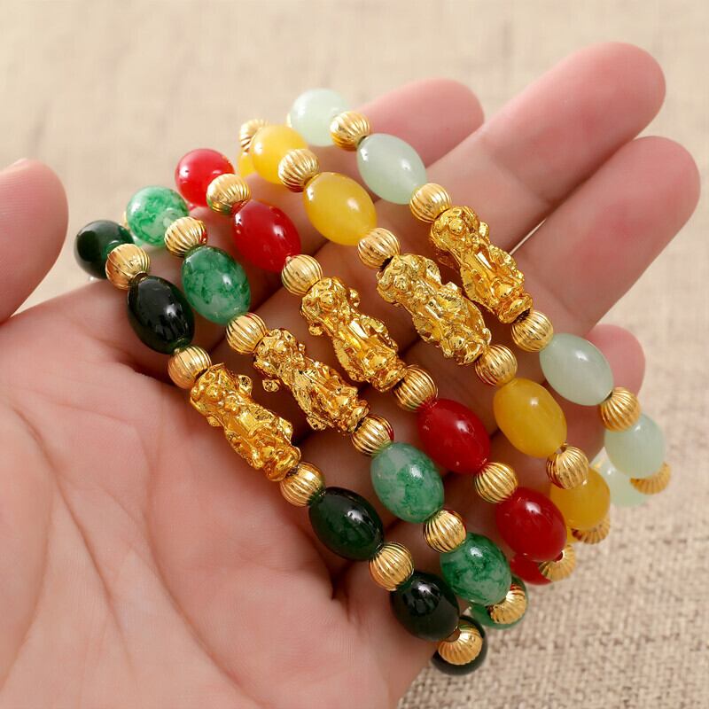 送料無料 手作り天然石ビーズブレスレット女性ゴールド貔貅風水ラッキーアミュレットリストバンドチャームブレスレット友情ジュエリーギフト ナチュラル アクセサリー AE1777783512877291