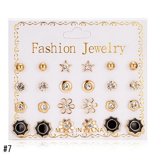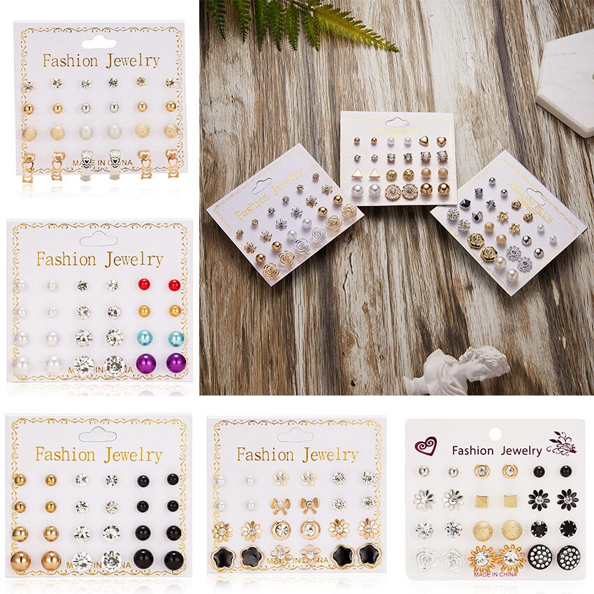 送料無料 12ペア/セットのパールフラワーボウジルコンカードイヤリングシンプルな多層幾何学的なスタッドピアス女性の女の子のジュエリー リボン マルチレイヤー 真珠 指輪 フラワーデザイン アクセサリー AE1777763674720576