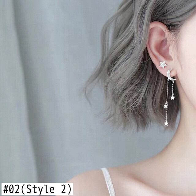 送料無料 シンプルなムーンスターラインストーンロングチェーンイヤリング女性の輝きサンクレセント幾何学的なテルピアスピアスパーティージュエリー 指輪 アクセサリー AE1777774450711765