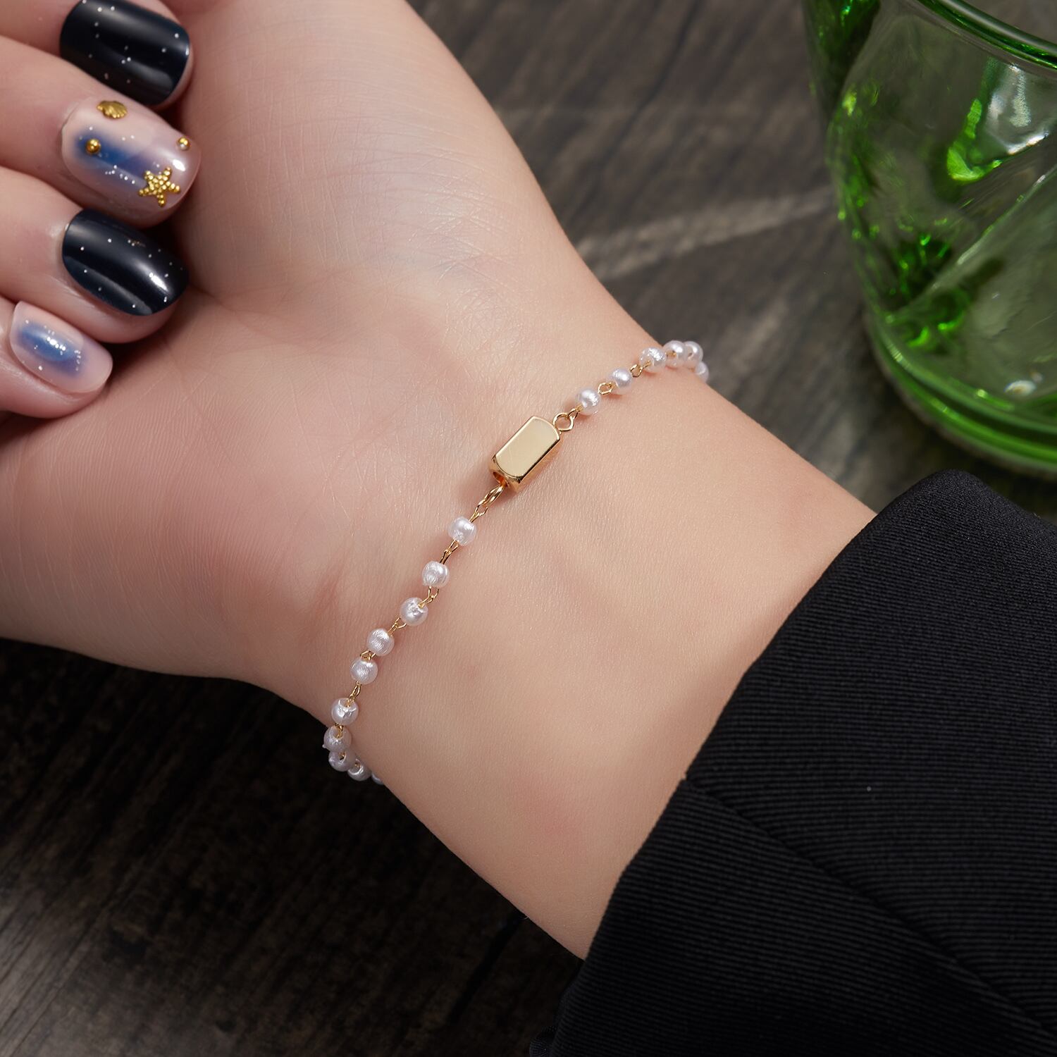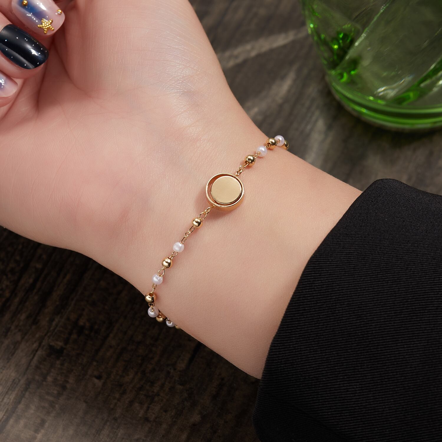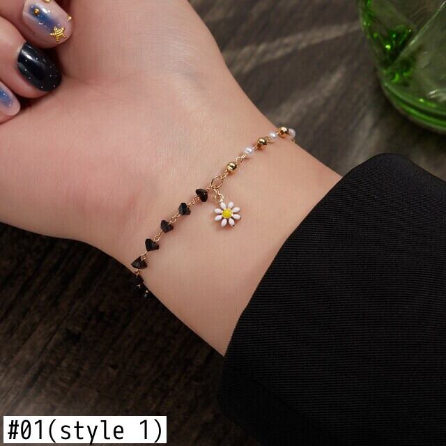 送料無料 花デイジーチャームブレスレット女性の女の子ブラッククリスタルビーズチェーンブレスレットジュエリー2022トレンド フラワーデザイン アクセサリー AE1777765733628985