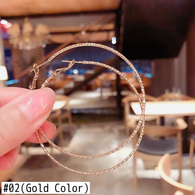 送料無料 絶妙な光沢のあるラインストーンゴールドサークルフープピアス女性気質人格誇張されたイヤリング2021ジュエリー 指輪 アクセサリー AE1777784952348594