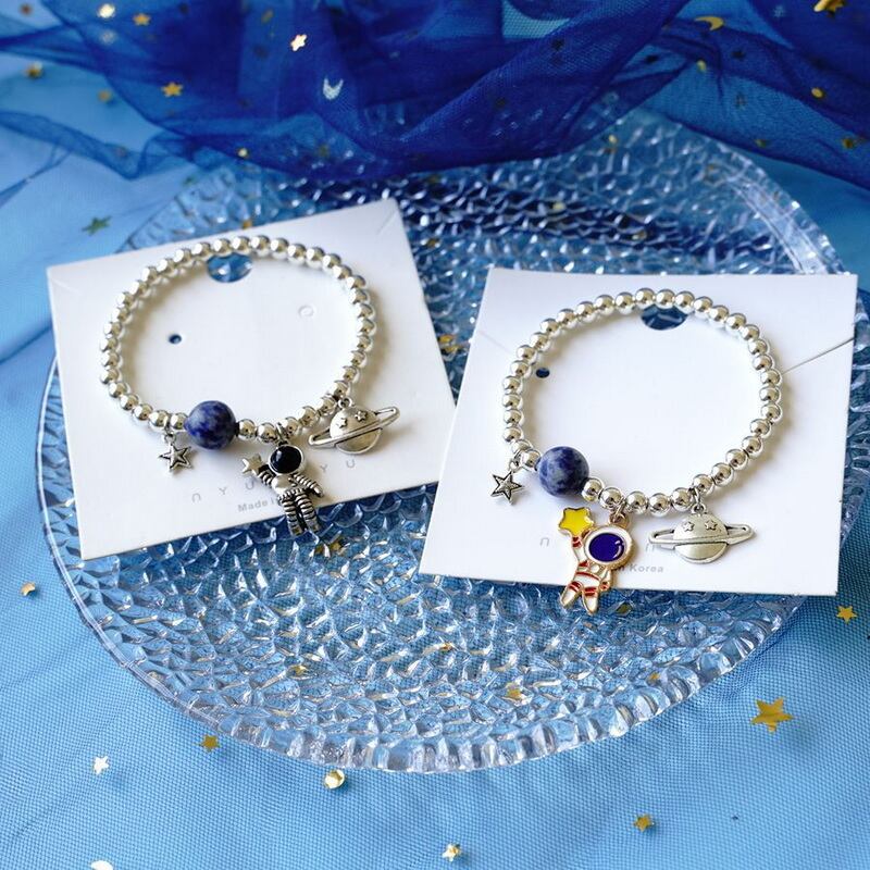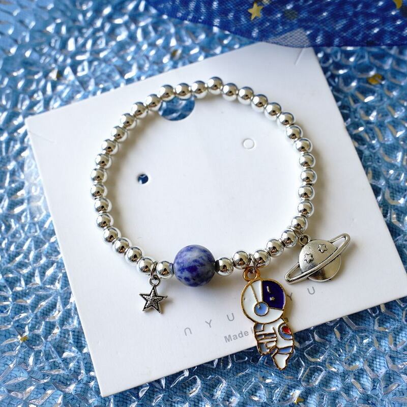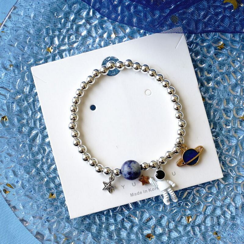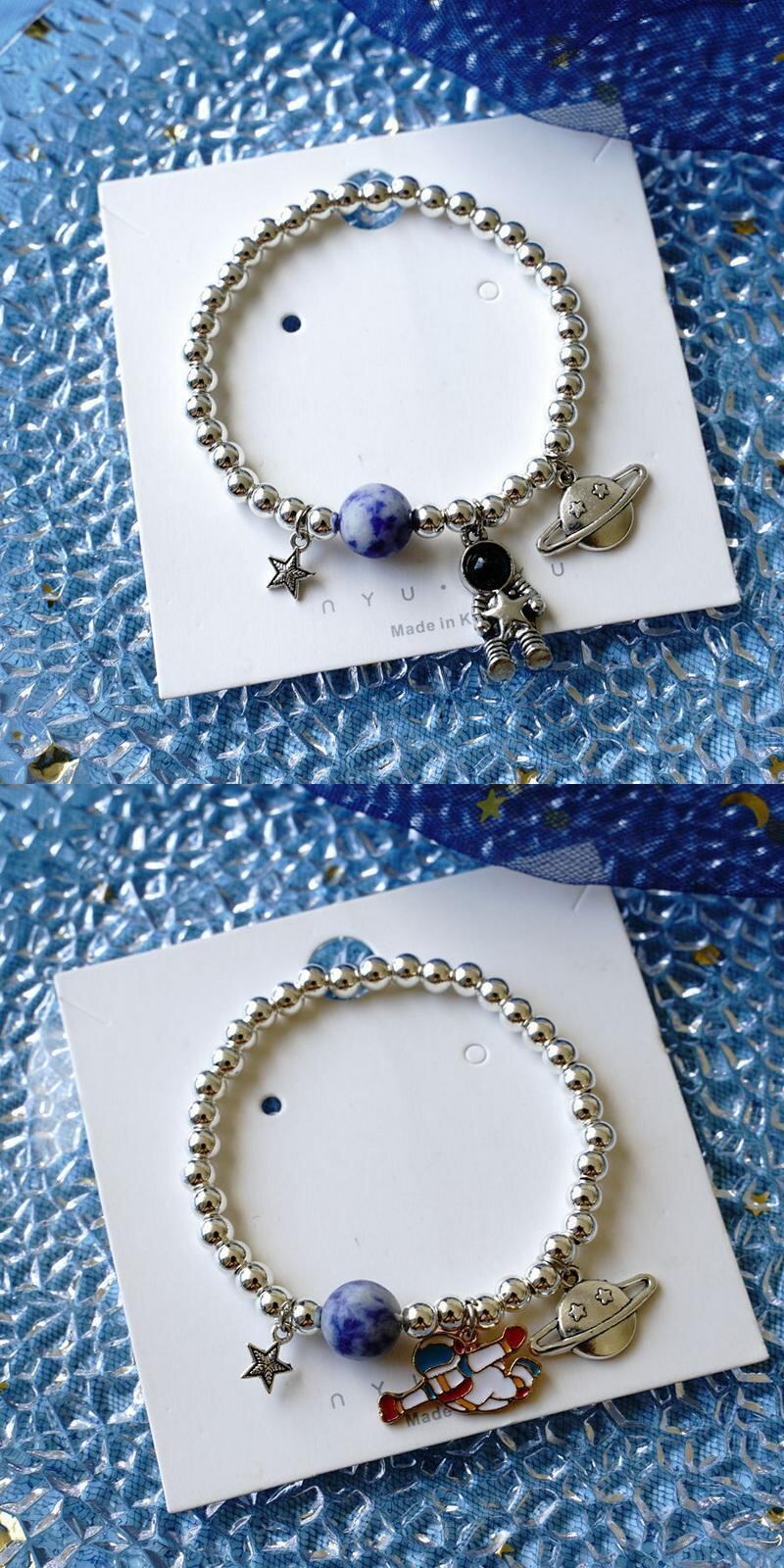 送料無料 クリエイティブかわいい漫画スタースペース宇宙飛行士チャームブレスレット女性の女の子青い地球手作りビーズブレスレットジュエリーギフト ブルー 大人ガーリー スウィート キュート カジュアル アクセサリー AE1777755099039573