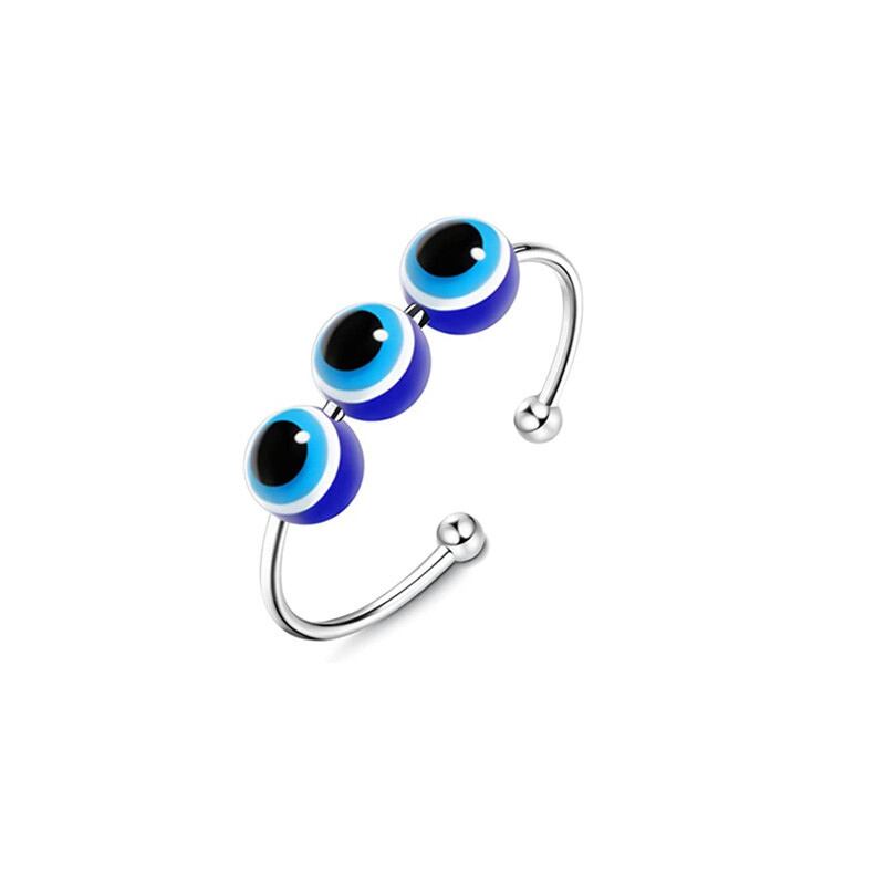 送料無料 ミニマリストシルバーカラー回転可能な不安リング女性男性トルコの邪眼オープンリング2022トレンドパンクジュエリーギフト 指輪 銀 アクセサリー AE1777711199135241