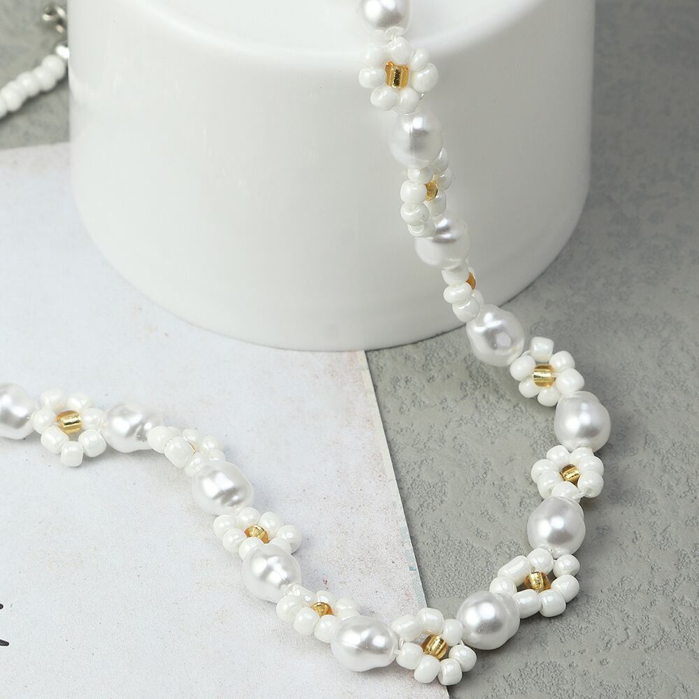 送料無料 INSヴィンテージパールフラワーチョーカーネックレス女性ボヘミアンカラフルクリスタルビーズ鎖骨チェーンネックレスY2Kジュエリー レース 真珠 フラワーデザイン ビンテージ アクセサリー AE1777773307014005