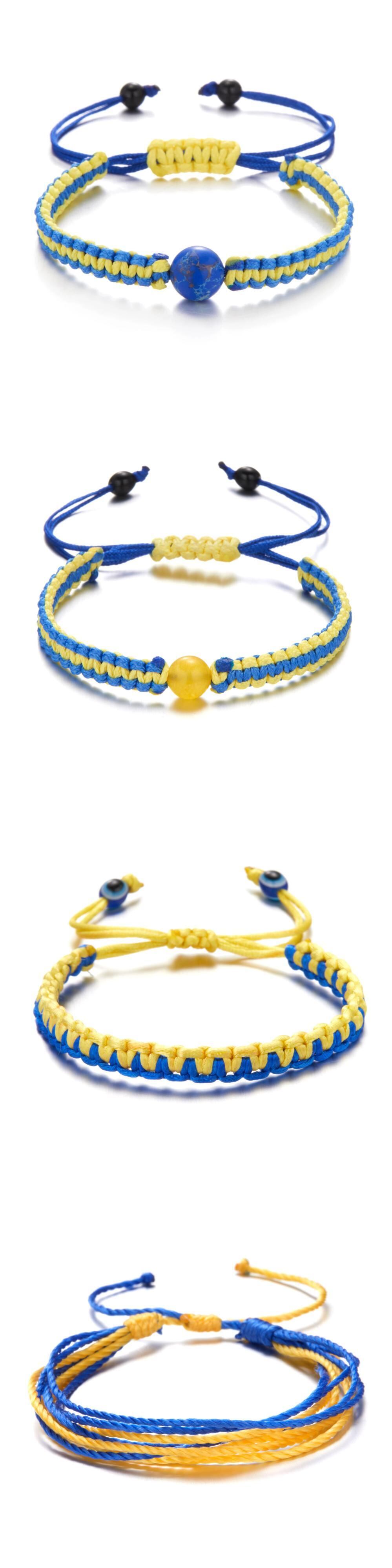 送料無料 手作りウクライナ旗ブレスレットウクライナ国旗イエローブルービーズ編みこみロープチャームブレスレット女性男性ジュエリーギフト アクセサリー AE1777791939861839