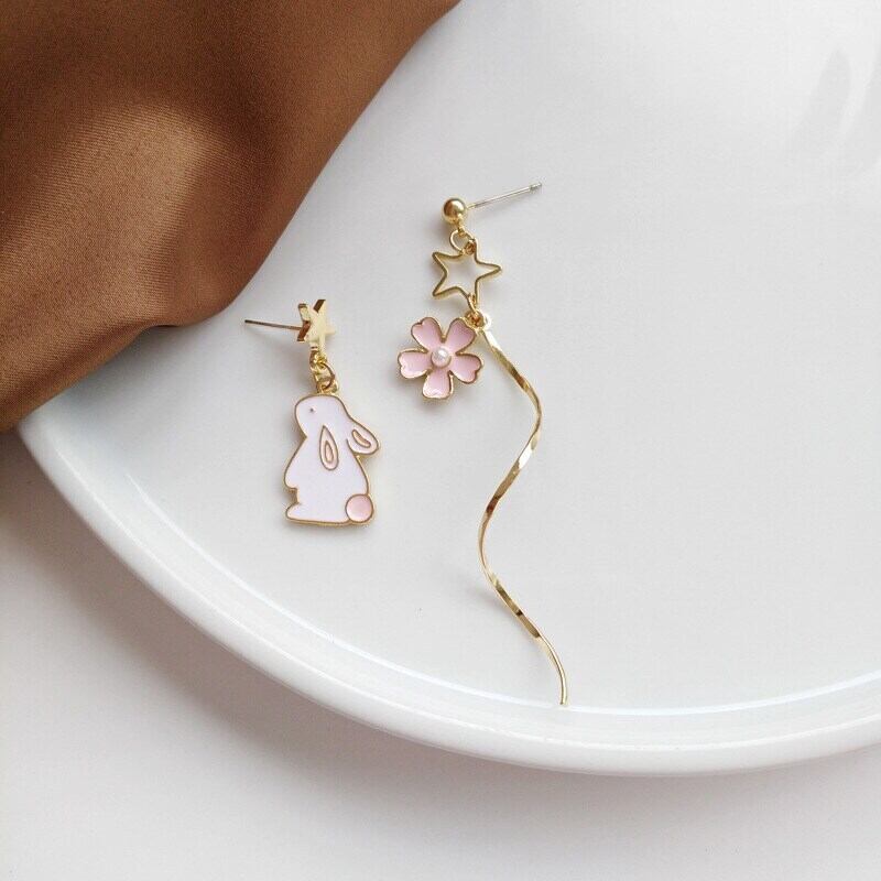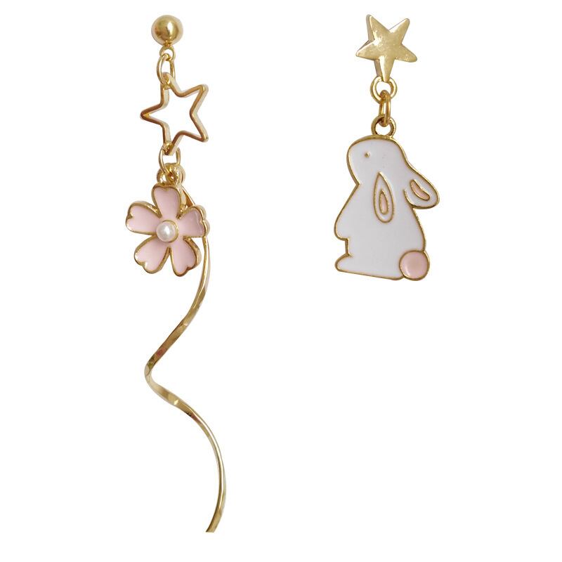 送料無料 かわいい猫のウサギの花Tel非対称スタッドピアス女性ジュエリーパーティー女の子の甘い気質アクセサリー イヤリング 大人ガーリー スウィート キュート カジュアル リング 指輪 フラワーデザイン アクセサリー AE1777775755823463
