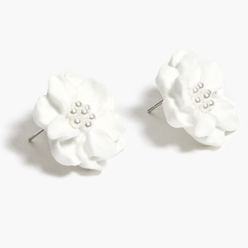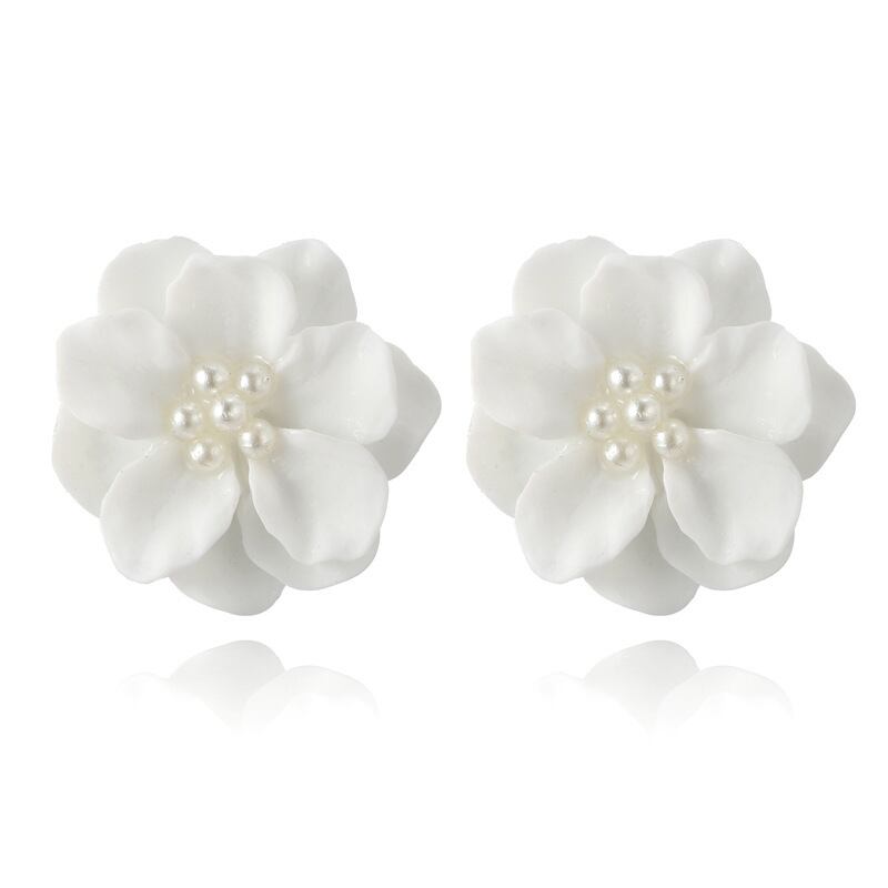 送料無料 カメリアフラワーイヤリングシンプルな白い花パールスタッドピアス女性かわいいイヤリングシックなジュエリーアクセサリー ホワイト 大人ガーリー スウィート キュート カジュアル 真珠 指輪 フラワーデザイン アクセサリー AE1777770707001355