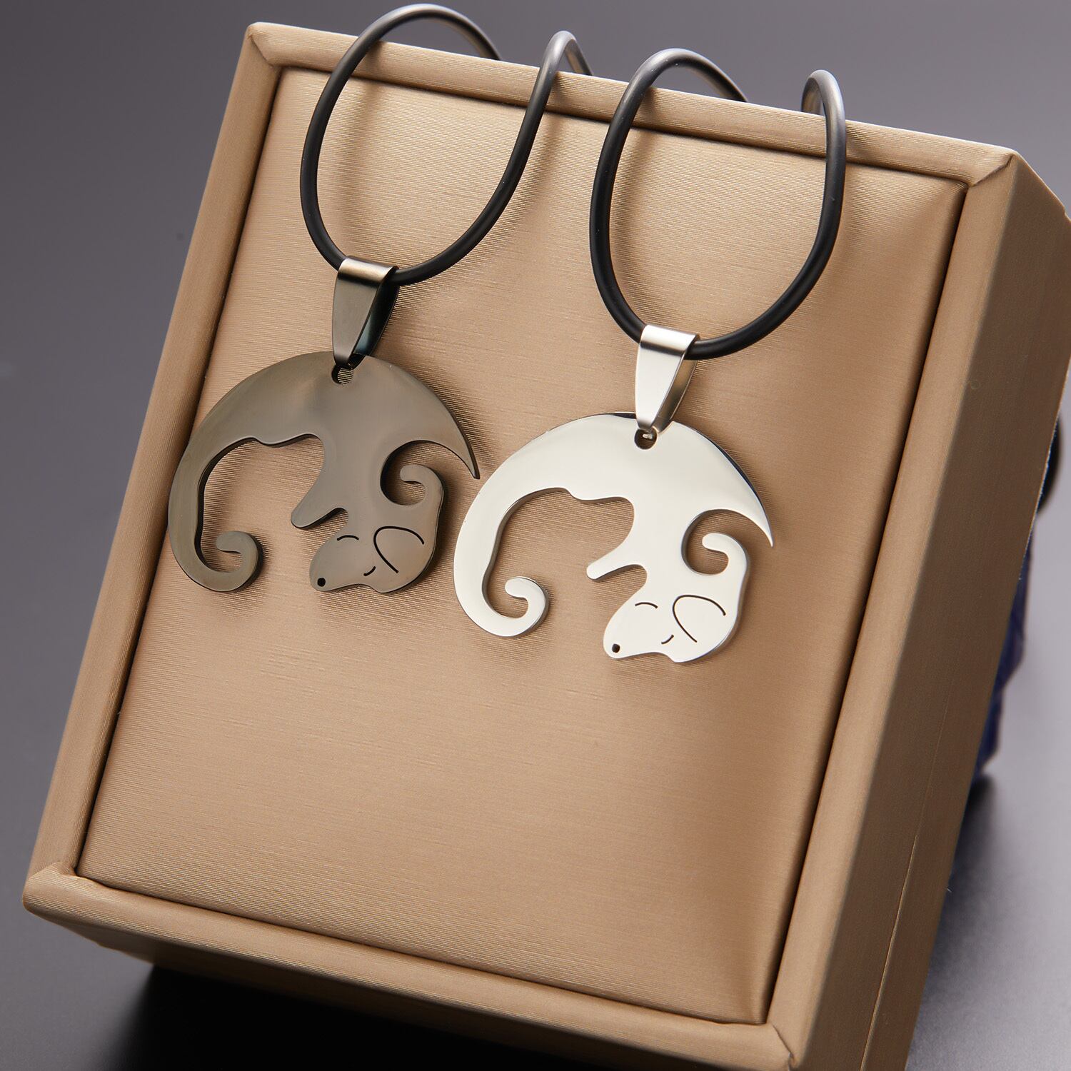 送料無料 ロマンチックなカップルネックレス2個ペアブラックホワイトキャットドッグアニマルペンダントネックレス女性男性友情ジュエリー恋人ギフト レッド レース アクセサリー AE17777110605242