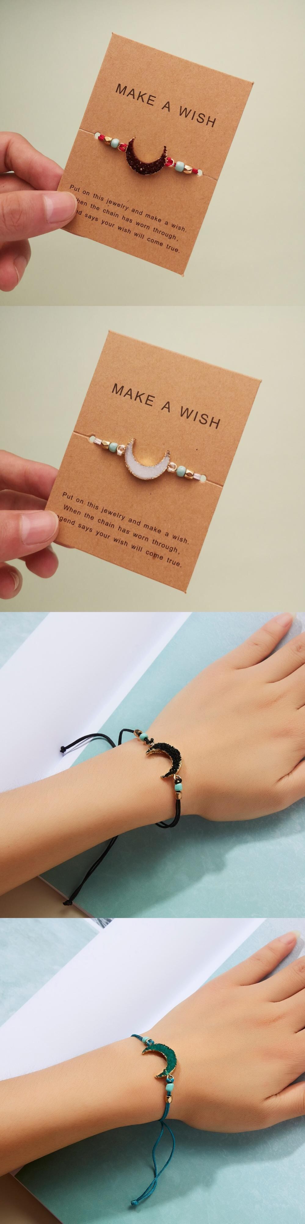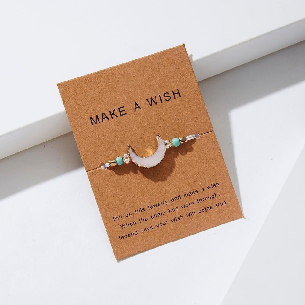 送料無料 ウィッシュカードを作るレジンナチュラルストーンウーブンチャームブレスレットクレセントムーンラッキーレッドストリングブレスレットジュエリーギフト 天然 アクセサリー AE1777723376156207