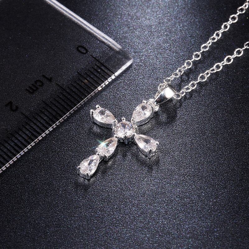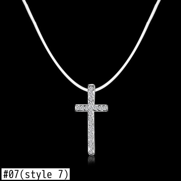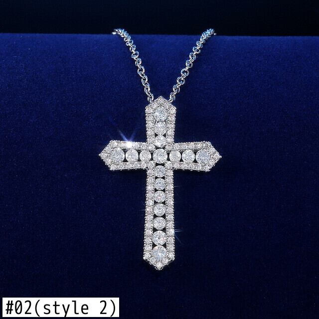 送料無料 シンプルシルバーカラークロスネックレス女性メンズヴィンテージクリスタルジーザスクロスペンダントネックレスラグジュアリーパーティージュエリーギフト レース 銀 ビンテージ アクセサリー AE1777789587710038